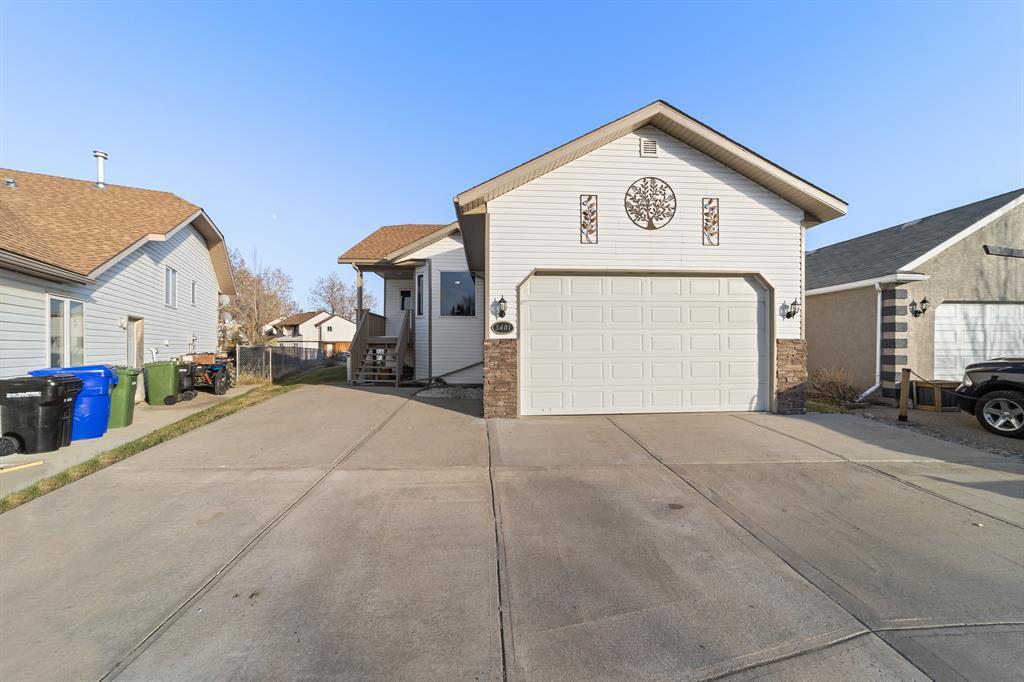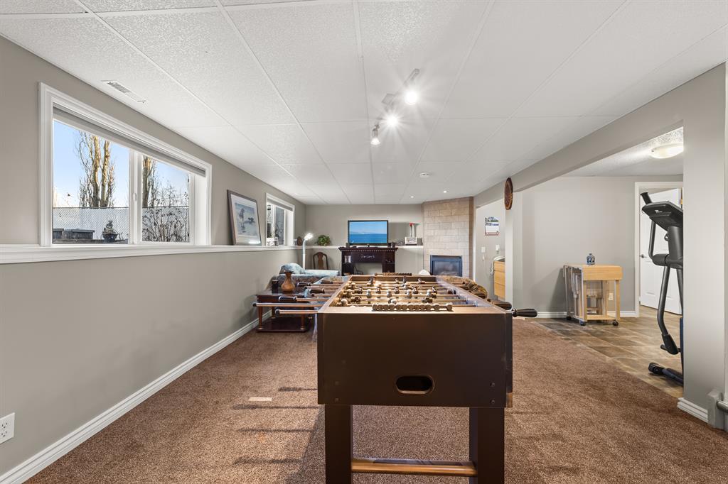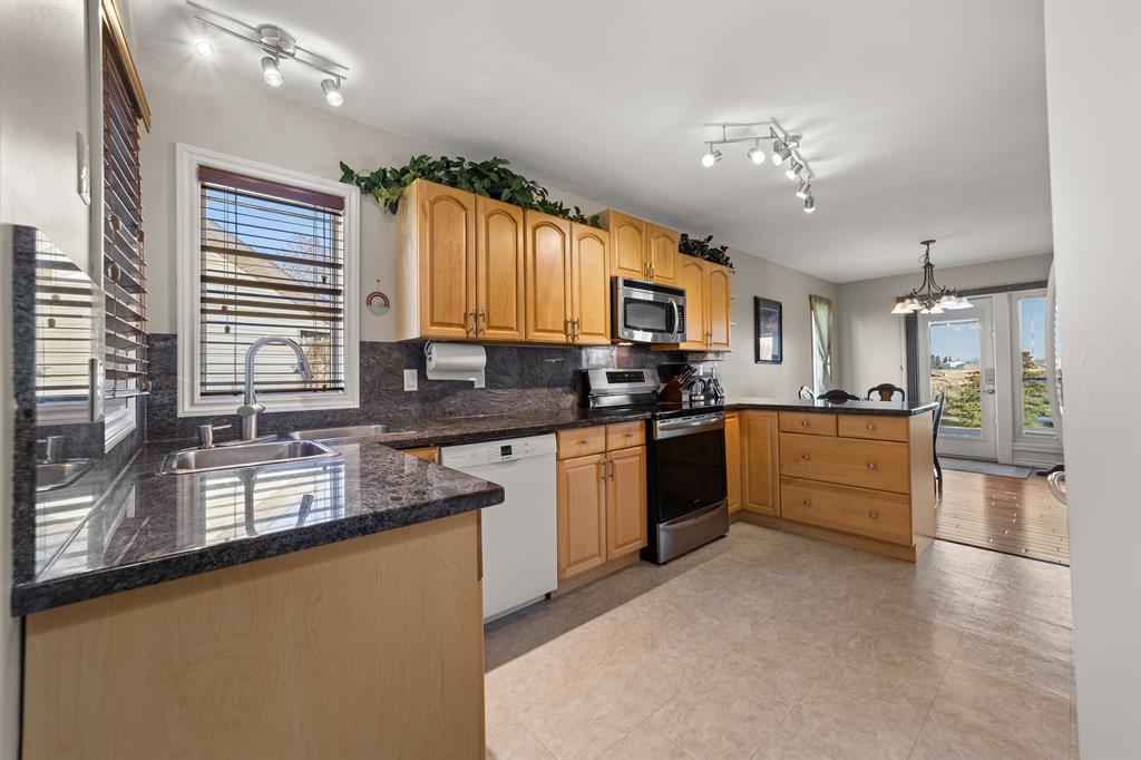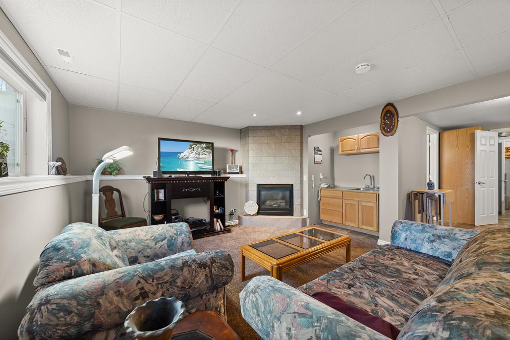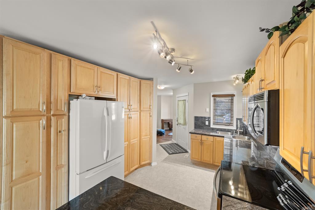 Your search is over and QUICK POSSESSION!! This fantastic BUNGALOW will check all the boxes. Great layout for anyone looking to "resize" with just under 1200 sq ft of well laid out home and, if outdoor living is your thing, this lot is pie shaped and LARGE! You are sure to appreciate many of the things this home has to offer, starting the moment you enter with the good sized entrance that is perfect for all the "hellos & goodbyes". Next, on to the heart of the home...the kitchen, which has a functional layout and has been updated with granite, great cabinets with numerous pull-outs, and most of the appliances have been updated along the way. The dining area is central to both the kitchen and living room making it great for gathering with family and friends. You are sure to enjoy the large south windows that look out onto your massive back yard, complete with raised garden beds, fruit bushes/shrubs. This level is also where you will find the primary bedroom with 3 pce ensuite & walk-in closet, 2nd bedroom, office/flex area, 4 pce bathroom and laundry pair. Downstairs is fully developed with a good sized bedroom, family room with cozy fireplace and wet bar, 3 pce bathroom, plenty of storage, flex space, work shop and large windows. Outside won't disappoint, front drive DOUBLE ATTACHED GARAGE with large concrete apron, a 21' X 29' DETACHED GARAGE that is heated, built-in work benches and 220V. There is also a graveled parking spot for the RV, with all of this, you are sure to have plenty of room for the trailers, toys and extra parking. Beyond your back fence and across the alley you have a great view of the man made pond and green space, perfect for bird watching and/or enjoying a tranquil moment! This home has it all and is in a desirable mature area of Olds, close to schools and many amenities. To help those ever rising utility bills there has also been extra insulation blown into the attic! Book your showing today, with all this one has to offer, it won't last long! (id:22211)