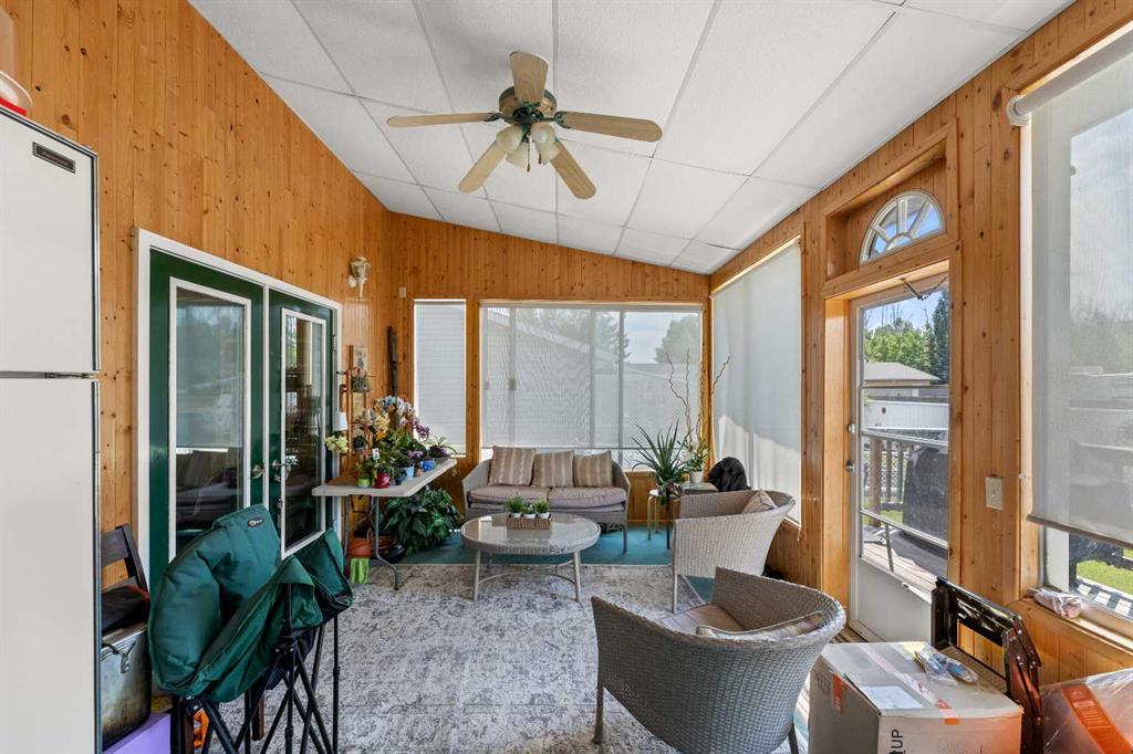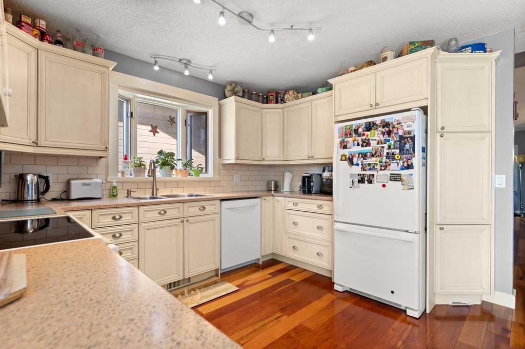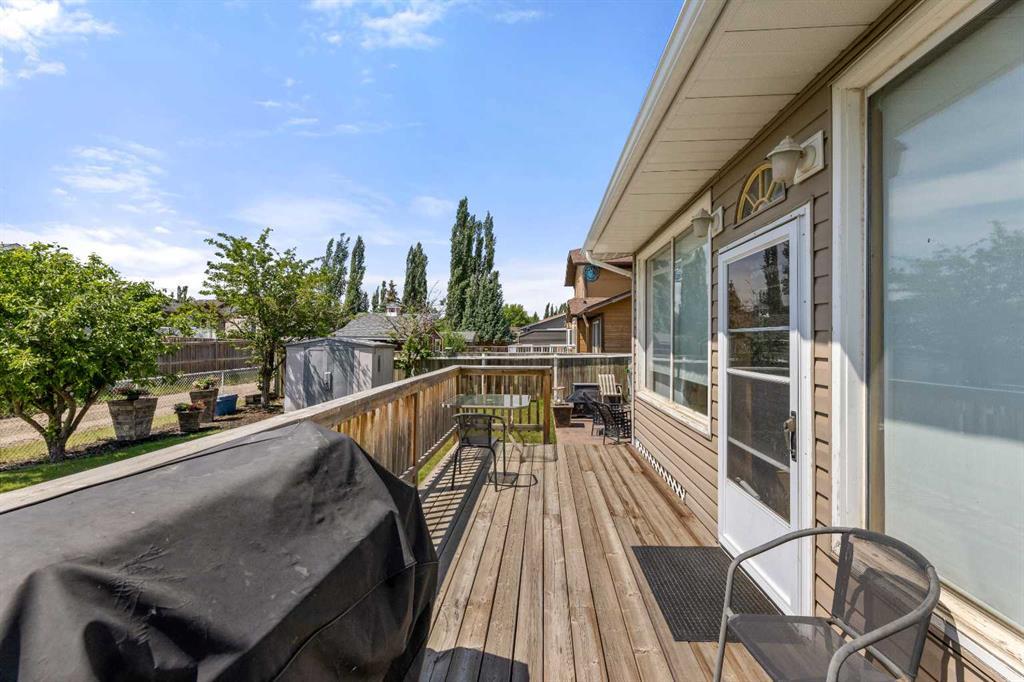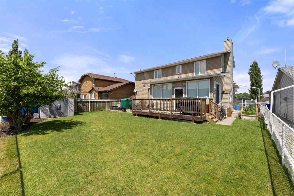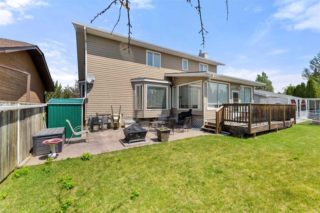 Fantastic Family Home! Over 2000 sq. ft. of living space including four bedrooms, 3 1/2 baths, fully developed basement, fenced backyard, double attached garage and RV Parking. Conveniently located close to schools, parks and walking paths makes this a safe location for families. Inside you are greeted with large vaulted ceilings, cozy living and dining room, a wrap-around kitchen with newer cabinets, newer appliances and a walk-in pantry. Appreciate the ease of having a half bathroom right off the kitchen area near the garage entrance. The main floor also includes a sunk-in family room with gas fireplace, access to a 3 season sunroom and a newer south facing deck. The upper floor includes a large primary bedroom with vaulted ceilings, built-in wardrobe organizers and 4 piece ensuite/office area. Completing the upper level are two other bedrooms and a full bathroom. Downstairs with its' under floor heat, has one more nice sized bedroom, full bathroom and family room area with built-in shelving. Furnace, laundry room and large storage area all share the same space. Outside next to the garage has a perfect spot for an RV to maximize space on the driveway. You don't want to miss the opportunity to see this house. (id:22211)