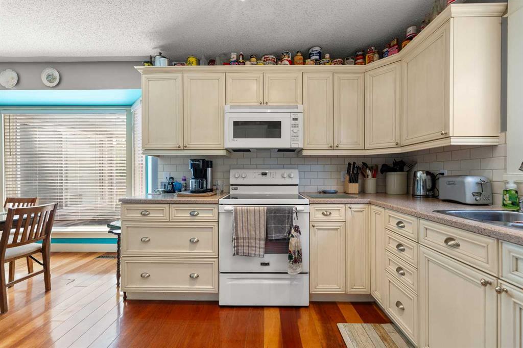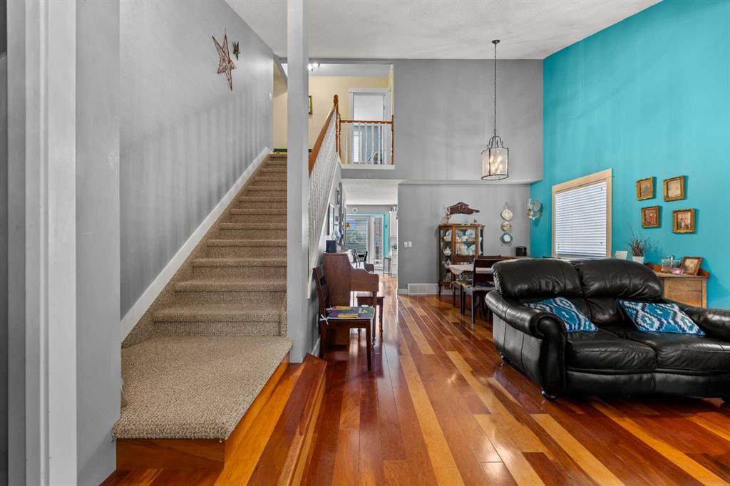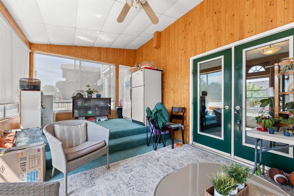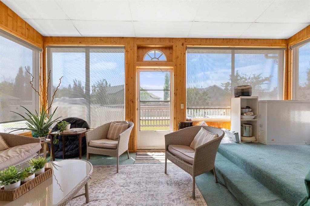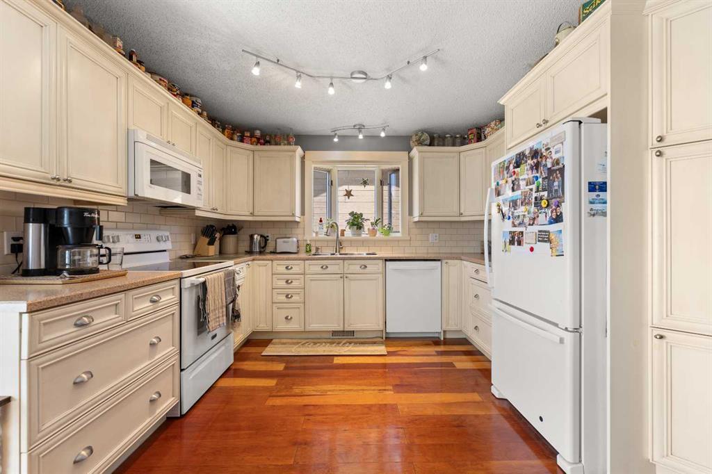 Fantastic Family Home! Over 2000 sq. ft. of living space including four bedrooms, 3 1/2 baths, fully developed basement, fenced backyard, double attached garage and RV Parking. Conveniently located close to schools, parks and walking paths makes this a safe location for families. Inside you are greeted with large vaulted ceilings, cozy living and dining room, a wrap-around kitchen with newer cabinets, newer appliances and a walk-in pantry. Appreciate the ease of having a half bathroom right off the kitchen area near the garage entrance. The main floor also includes a sunk-in family room with gas fireplace, access to a 3 season sunroom and a newer south facing deck. The upper floor includes a large primary bedroom with vaulted ceilings, built-in wardrobe organizers and 4 piece ensuite/office area. Completing the upper level are two other bedrooms and a full bathroom. Downstairs with its' under floor heat, has one more nice sized bedroom, full bathroom and family room area with built-in shelving. Furnace, laundry room and large storage area all share the same space. Outside next to the garage has a perfect spot for an RV to maximize space on the driveway. You don't want to miss the opportunity to see this house. (id:22211)