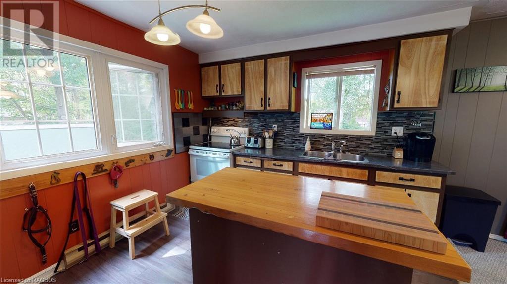 Fantastic raised bungalow situated on a nice private lot! Centrally located to many Bruce Peninsula attractions in the lovely community of Oliphant. Just a short bike or healthy walk to the sandy shores of Lake Huron where you can enjoy swimming, kayaking, boating, and breathtaking sunsets! This solid home features 3 bedrooms & 1.5 bathrooms on the main level, an open concept kitchen/dining and living room with large 8' sliding patio door that brings the outdoors in, and gives easy access to the spacious raised deck with pergola & privacy. The lower level offers a large L-shaped family room plus an abundance of storage space. Plenty of great features to list; Heated with 2 propane gas fireplaces, main level laundry, detached single garage and storage, concrete patio area, drilled well, UV system, and nice quiet street for the kids. This wonderful property would make a great year round home of 4 season cottage! (id:22211)