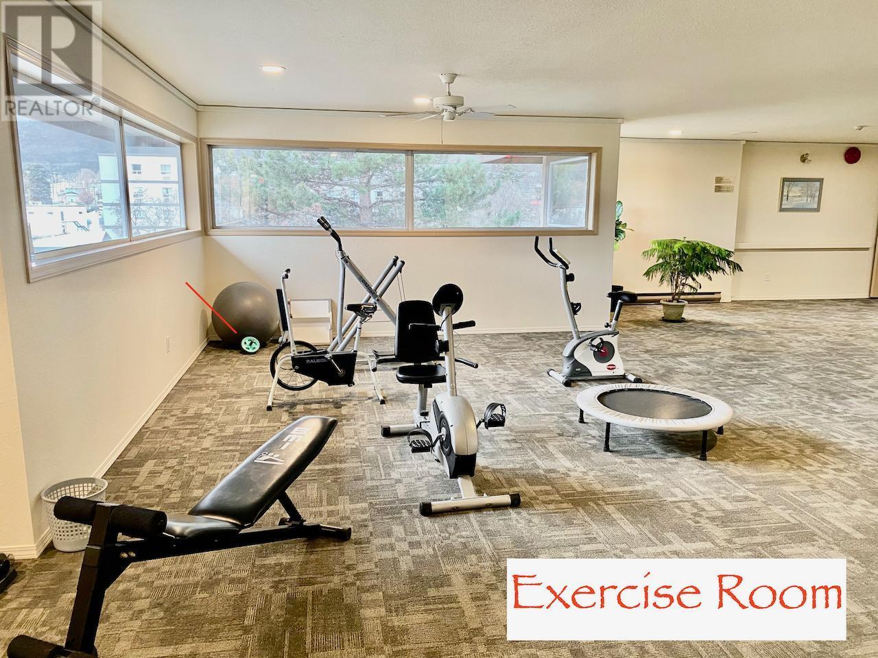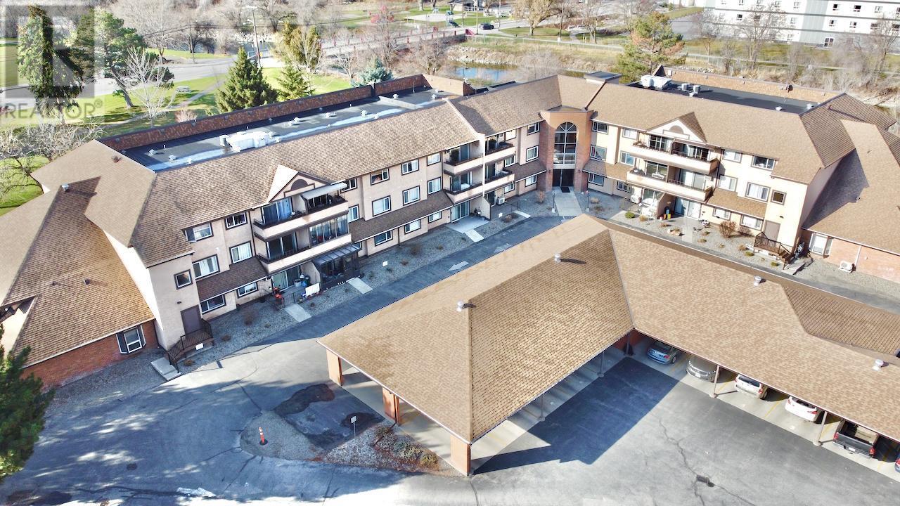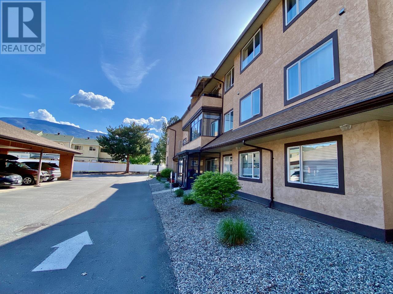 This immaculately kept ground level unit at Park Place in a walk-up unit featuring a cool north facing patio. 2 spacious bedrooms ,a bright kitchen with a convenient pass through to the living room/dining room area. Main Bathtub has been re-fit with a lowered sill for ease of access into the shower. 4 appliances, in-suite laundry. This well managed and maintained development has excellent amenities including secure entry, games room, guest suite, social kitchen and dining room, workshop, library and exercise facility. Great location within walking distance to almost everything in town and the hiking and biking trails along the Okanagan River are just a few steps away. This unit is waiting for you to move in and enjoy the carefree lifestyle that Park Place has to offer. Perfect for people who like to come and go and know that their home is secure. Pets are not permitted, 55+ age restriction. Strata fees $391/mo. (id:22211)