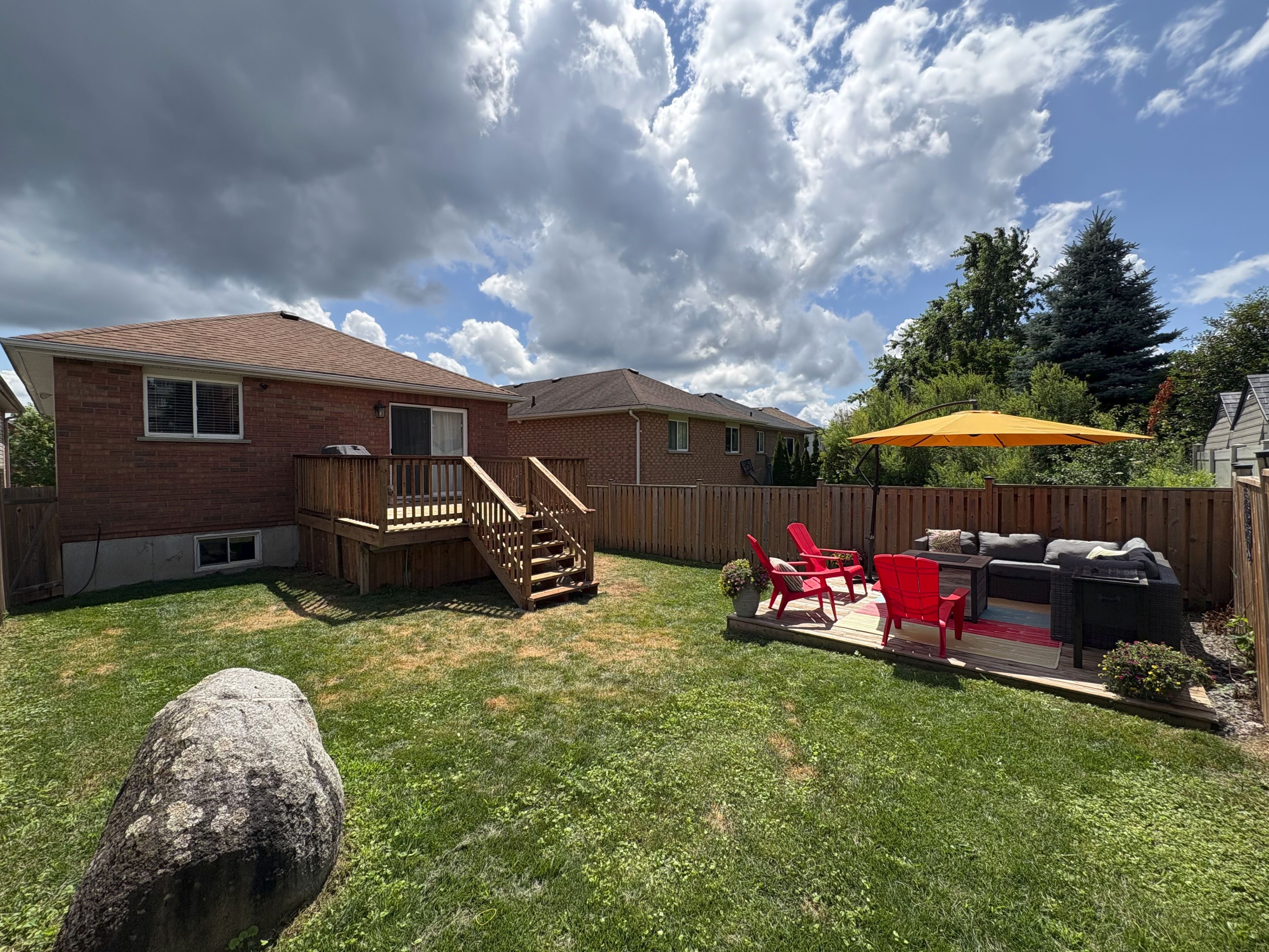 Welcome to this charming, raised bungalow located in Orillia's sought after West Ridge community. Thoughtfully updated and well cared for, this home offers the perfect blend of comfort, flexibility and convenience ideal for first time buyers, downsizers or investors. Step inside to a welcoming open-concept layout that connects the tiled entryway to the livingroom, dining area and kitchen. Flooded with natural light from the oversized windows, the main level feels airy and bright, while treed front yard offers a sense of privacy and seclusion. New stonework added to the front entrance in 2025, adding stunning curb appeal and giving an inviting first impression. Inside, you'll find hardwood flooring, updated paint and fresh blinds throughout, enhancing the home's clean contemporary feel. The main floor features 2 generous bedrooms and 2 full bathrooms, including a spacious primary suite complete with an accent wall, ensuite bath, and direct walkout to the backyard. Step outside onto the fresh rebuilt deck (2025), perfect for outdoor dining and summer BBQ's. The backyard is fully fenced and includes a lower patio and firepit. The fully finished lower level offers incredible flexibility, with a third bedroom, a third full bathroom, home office and a large living area. With direct access to the garage and driveway, this space has excellent potential to be used as an in-law suite or private guest area. Additionally updates include new shingles (2016), newer owned hot water tank, a fenced yard (2020), newer stove and dishwasher and easy care finishes throughout. Parking for 3 vehicles and a convenient walk-in entrance from the garage into the lower level add to the home's functionality.Located within walking distance to parks, schools, Lakehead University, recreational centre, shopping, restaurants and public transit.