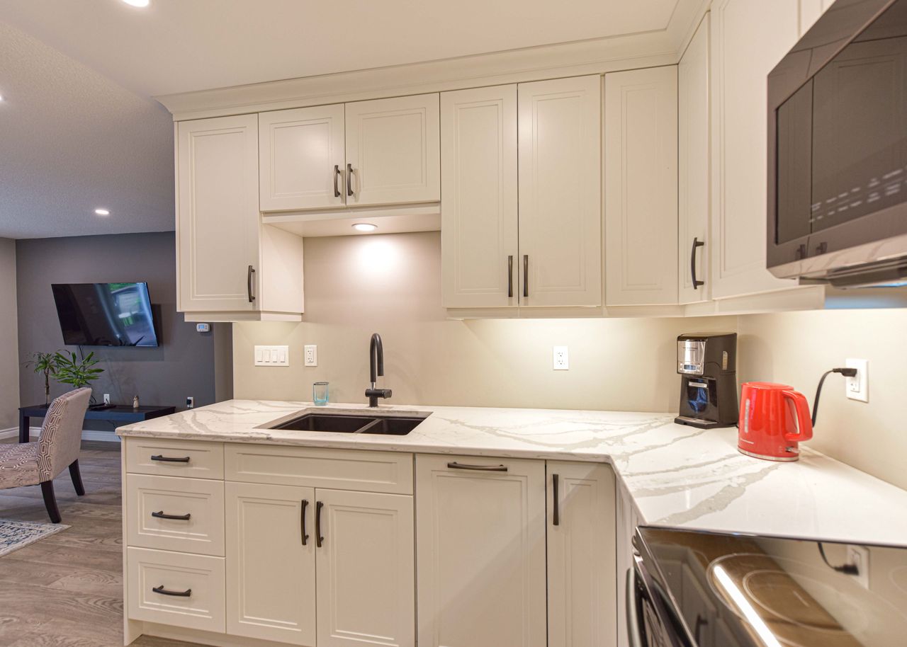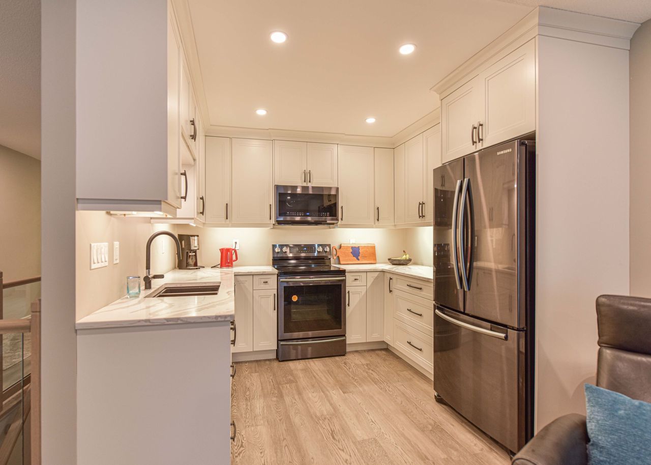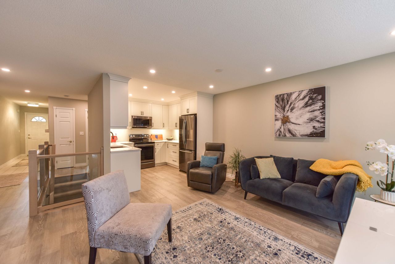 THE RIGHT MOVE: This renovated retirement bungalow condominium is maintenance free living. LOCATION: A fantastic area of Orillia, walking distance to Lake Couchiching, Leacock Museum, Tudhope Park and Millenium Trail. 20 minute walk to the downtown. FLOOR PLAN: Great plan -2 bedrooms & 2 full baths (ensuite) laundry & inside entry to garage on the main. Lower level partially finished with den & rec-room + huge storage area. FEATURES: Beautifully renovated gorgeous kitchen, quartz counters, engineered hardwood, updated baths, glass railings & fresh modern paint. A/C (2020) RELAX: Leave lawn maintenance, snow removal, exterior window cleaning & building maintenance behind. BONUS: Your reasonable monthly fee includes Rogers Ignite tv, Internet & home phone. SOCIAL CLUB: Private clubhouse for owners to rent for special events includes a kitchen & bathrooms as well as regular homeowner activities such as "Happy Hour" yoga, cards, library, art classes. Visitor Parking available.