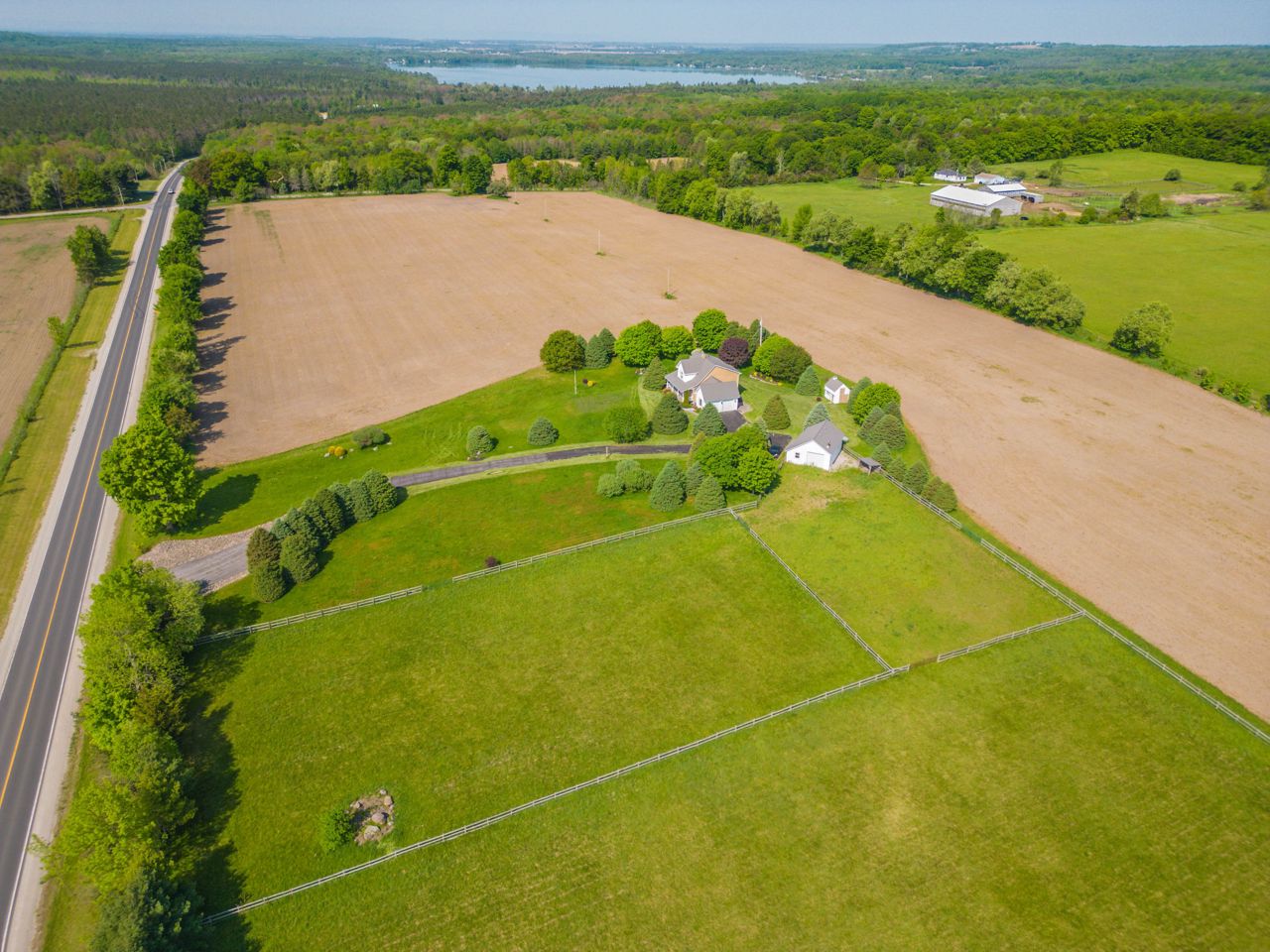 Welcome to your very own 33-acre haven of tranquility at 1588 Moonstone Road. This exceptional property offers breathtaking panoramic vistas, making it an ideal retreat for nature enthusiasts and those seeking a serene escape. Situated just a short drive from the renowned Mount Saint Louis Ski Hills and nestled in close proximity to the serene Simcoe Forest and Orr Lake, this estate embodies a rare and enticing opportunity you simply cannot overlook. As you arrive, you'll be greeted by an expansive, all-brick residence that has been meticulously maintained, exuding timeless charm. But the allure of this property extends beyond the main residence. Here, you'll also discover a versatile, insulated accessory building boasting a spacious workshop, two horse stalls, and two generously sized horse paddocks. Whether you're a hobbyist, an equestrian enthusiast, or a craftsman, this additional space offers endless possibilities.