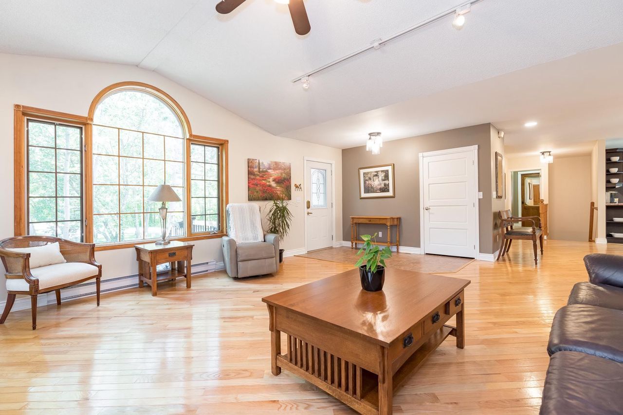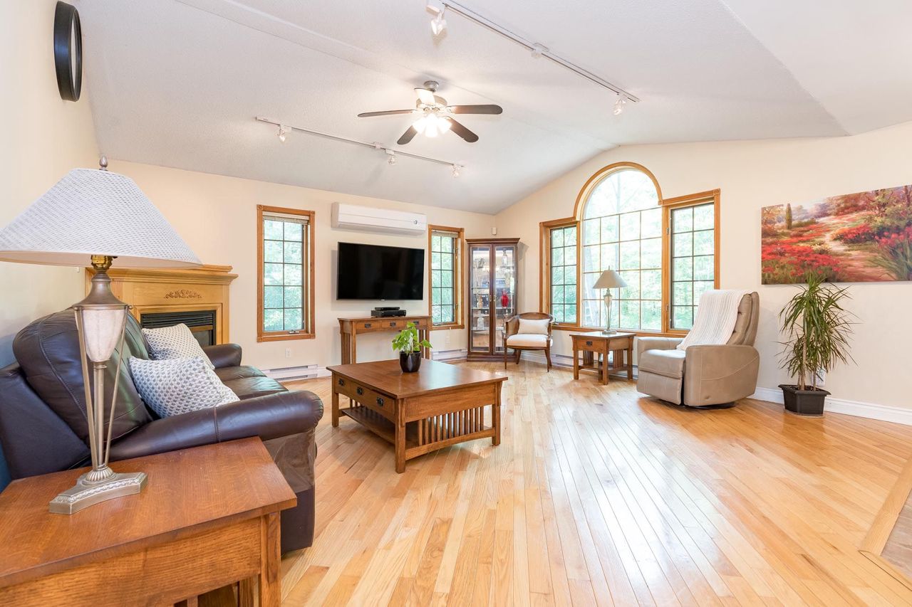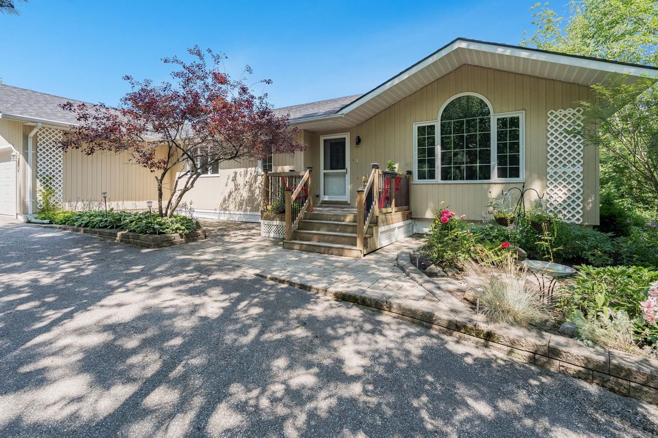 Top 5 Reasons You Will Love This Home: 1) Immaculate ranch bungalow on over 2 acres of private property with a circular driveway, and located within an easy drive to Orillia, Moonstone skiing, and Georgian Bay 2) Open-concept main level with a cathedral ceiling in the living room, gleaming hardwood fooring, and a large dining room with a window capturing picturesque views of lush gardens 3) Expansive eat-in kitchen, fully renovated, with a large island and upgraded stainless-steel appliances, next to a breakfast area overlooking the pond 4) Two main-level bedrooms with an additional bedroom, currently used as a hobby room, alongside an additional room utilized as a bedroom in the spacious open basement 5) Basement offering a walkout with a rough-in for a wood-burning freplace, an additional propane freplace, and a kitchen, creating the potential for multi-generational living or as an in-law suite. 3,260 fn.sq.ft. Age 25. Visit our website for more detailed information.