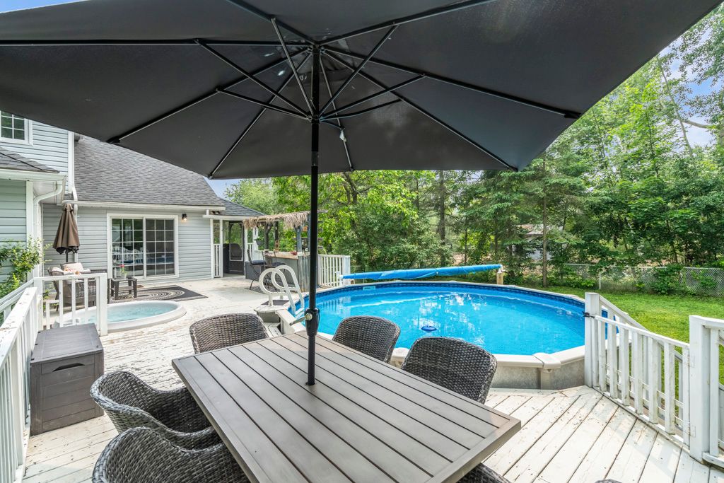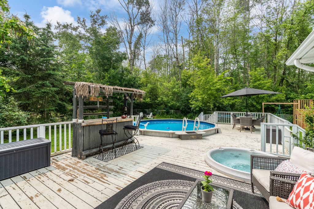 Welcome to 260 Lakeshore Rd W centrally positioned between Barrie and Orillia, this property is nearly an acre in size. The wrap around porch and new garage door amplify the lovely curb appeal of the home. Entering the home the tasteful colour profiles highlighted in the new flooring, interior stairs. The main floor layout with a centrally located kitchen featuring an island. The living room has space for the big screen tv and oversized couches, while the combined sitting and dining area has cathedral ceilings, multiple windows, and a walkout. A 2-piece powder room, main floor laundry, garage access, and an office to complete the main floor space. The rear yard will surely be an entertaining hub with an 18’ pool, built-in hot tub, tiki bar, while the fully fenced yard is perfect for the kids. On the second floor you’ll find two bedrooms and a full bathroom. The lower level has a rec room, as well has additional bedroom, full bathroom, and office/storage space.