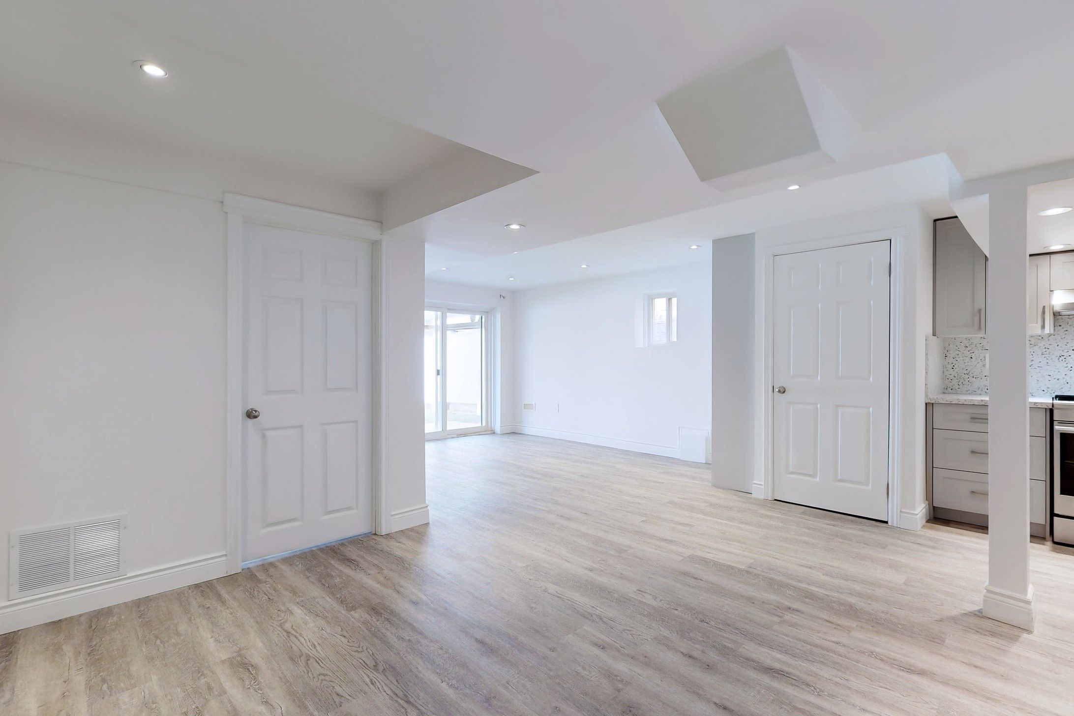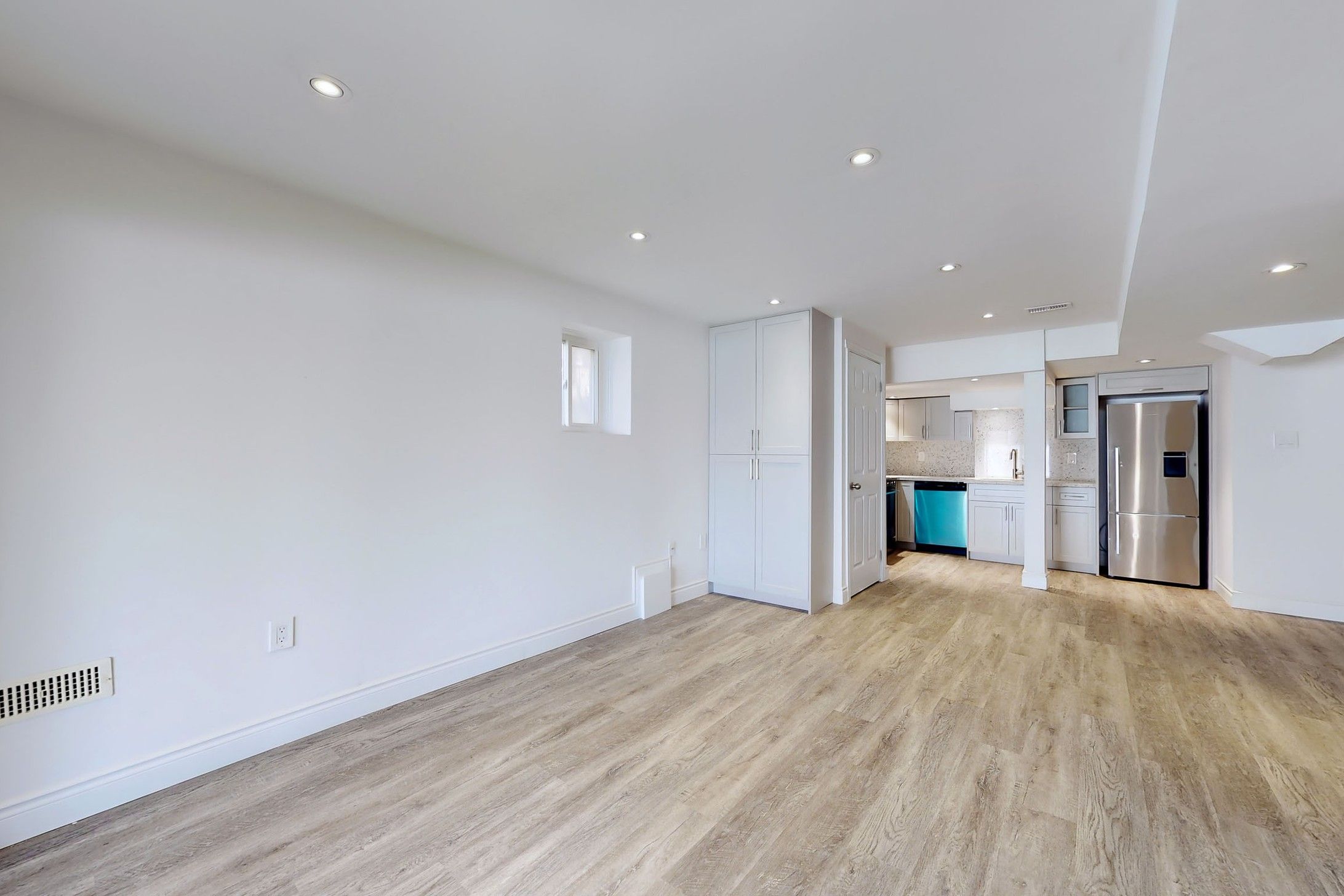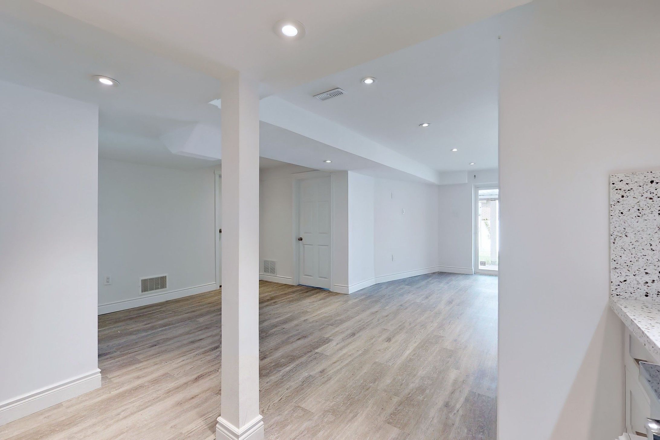 Professionally Renovated Finished Walk Out Legal Basement Apartment, Great For Professionals, Very Quite and Awesome Landlord, great Living Space; Updated Kitchen With Stainless Steel Appliances (Fridge, Stove, Dishwasher) & Breakfast Bar Nook, New Laminate Floors, Fresh Paint, Very bright Bedroom with 2 Closets and above Grade Window, 3Pc Bathroom & your Separate private Laundry Ensuite with Washer & Dryer! Walk out To Gorgeous 43 Ft Wide Landscaped Garden, and 2 Parking Spaces (Tandem-Back To Back) On The Driveway. Tenant Pays For 30% Of Utilities.