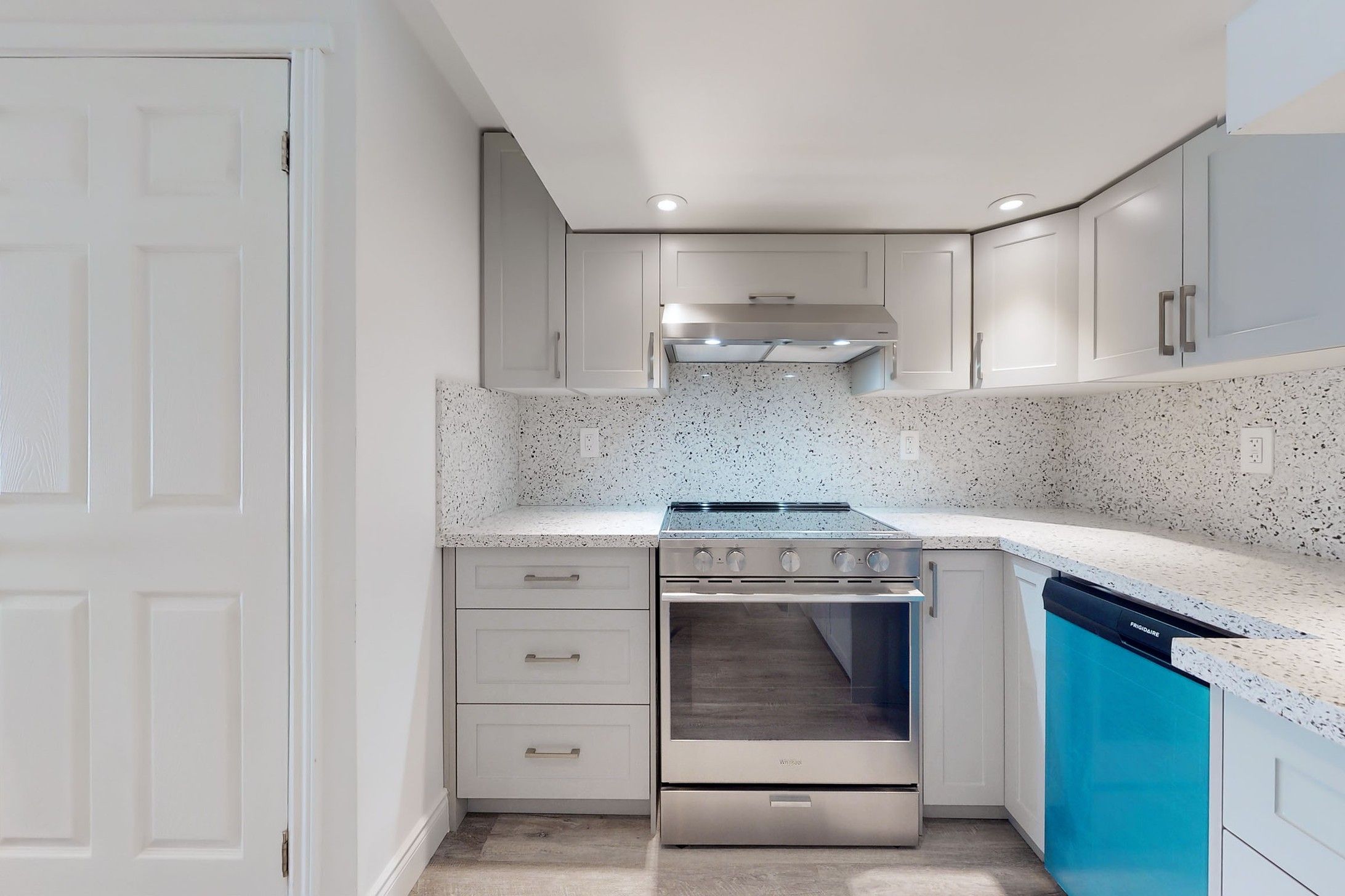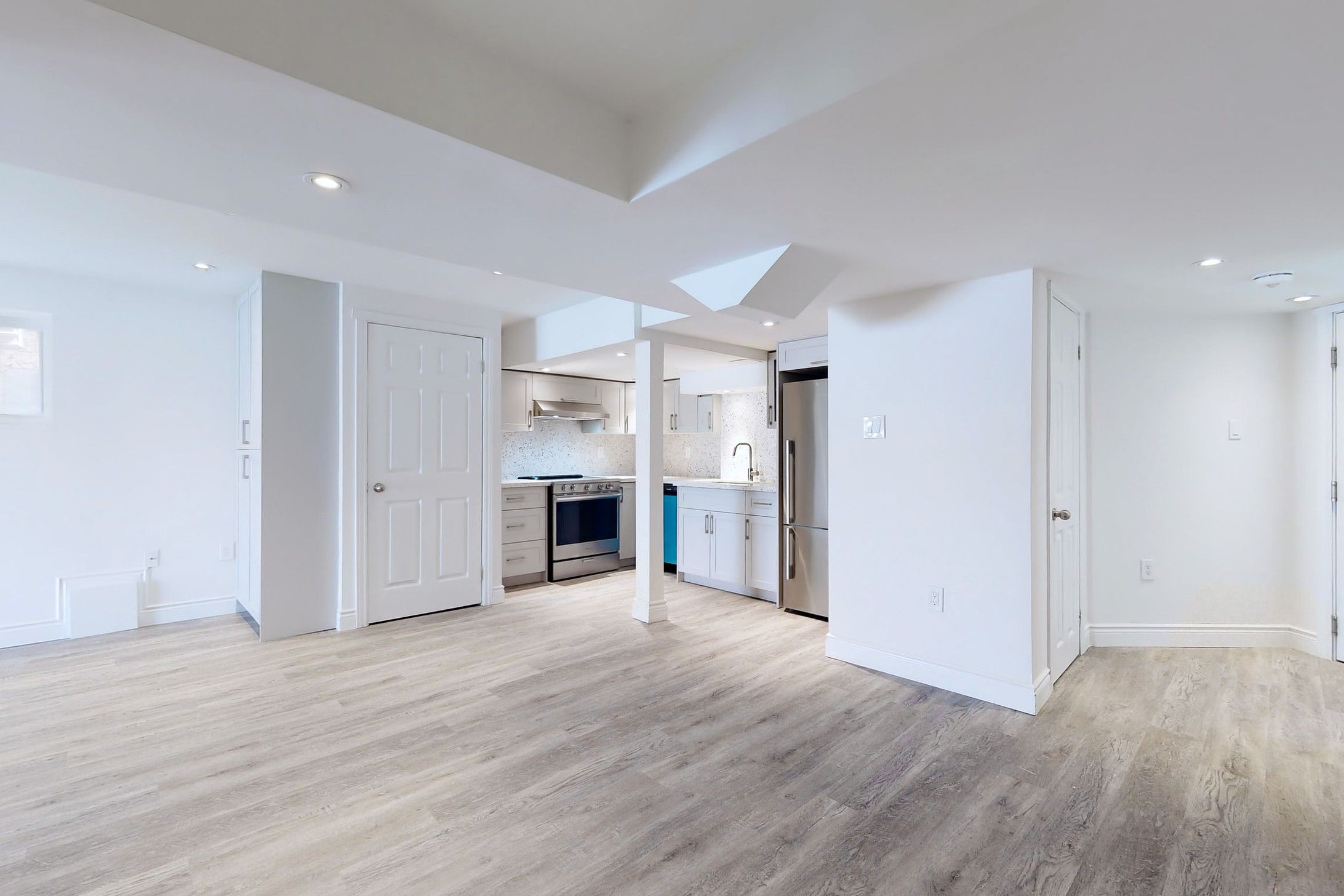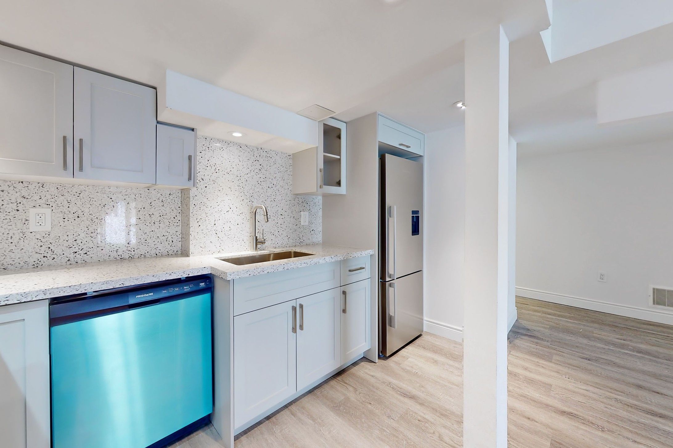 Professionally Renovated Finished Walk Out Legal Basement Apartment, Great For Professionals, Very Quite and Awesome Landlord, great Living Space; Updated Kitchen With Stainless Steel Appliances (Fridge, Stove, Dishwasher) & Breakfast Bar Nook, New Laminate Floors, Fresh Paint, Very bright Bedroom with 2 Closets and above Grade Window, 3Pc Bathroom & your Separate private Laundry Ensuite with Washer & Dryer! Walk out To Gorgeous 43 Ft Wide Landscaped Garden, and 2 Parking Spaces (Tandem-Back To Back) On The Driveway. Tenant Pays For 30% Of Utilities.