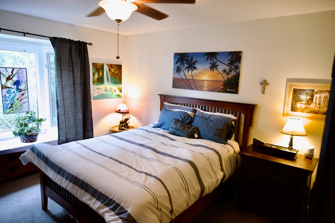 A rare gem. Well over 1600 SqFt of sprawling 2-bedroom bungalow, with all the bells and whistles. Huge family eat-in kitchen shares the back of the home with large family room, complete with gas fireplace and walk out to private sanctuary deck. The south and west of the home contain the primary bedroom, complete with two closets and ensuite, next door is the 2nd bedroom, perfect for your child or a home office. The living and dining are at the front of the home, with a vaulted ceiling and room to stretch out. There's a double car garage, waiting to keep both vehicles free from the elements all year long. The basement has been preserved in its raw state, patiently waiting for to add your own elements and make this your dream home come true.