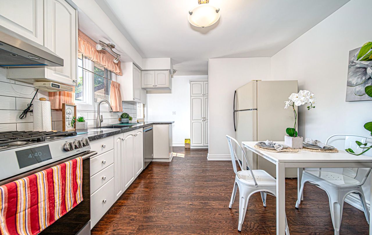 Beautifully updated 3 bedroom side split home located in Oshawa's sought-after neighborhood boasts splendid updates and a gorgeous inground pool, near Oshawa creek and greenbelt area and steps to park, school and place of worship. The main floor has been completely renovated to a modern living space features crown molding, baseboard trim, and laminate flooring. The kitchen has been recently updated with quartz countertops, backsplash, an under-mount sink, and a 6-burner gas stove complete with new air filter vent. Relax or entertain guests in the cozy lower level family room that exudes rustic charm with its custom wood interior design, fireplace with stone hearth, dry bar, and designer 3 piece bathroom. Outside the property highlights huge landscaped front yard with huge parking space and a nice brick detached garage with hydro and electric heat. The private and fully-fenced backyard paradise is perfect for intimate gatherings or entertainingKitchen quartz counter, back splash, undermount sink