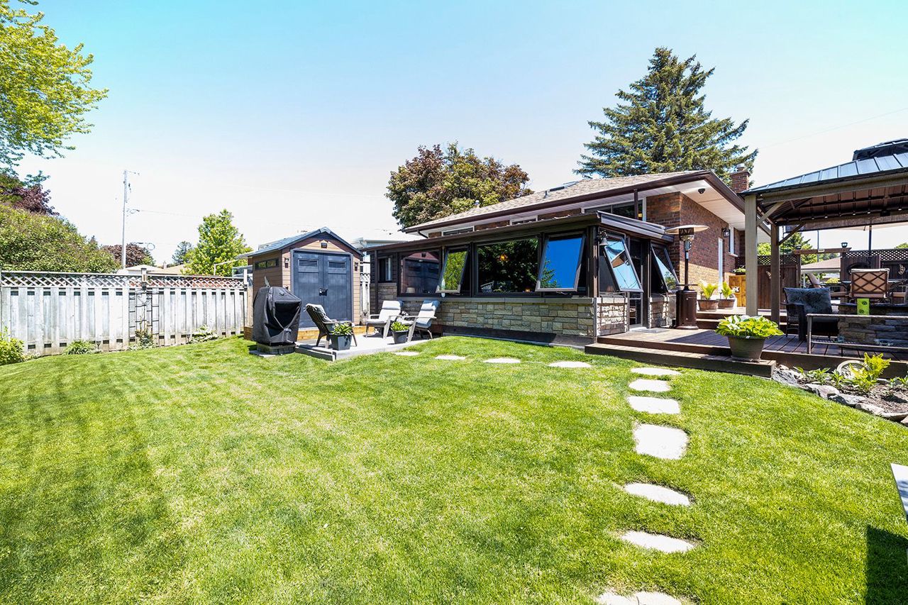 Turn Key And Move In Ready! This One's A Stunner! 10+++! Fabulously Maintained, Lovingly Upgraded, Lush, Pristine Gardens And All On The Beautiful Ravine! Curb Appeal Abounds With An Oversized Paved Drive And Stunning Grounds. Inside, A Meticulously Kept Home Greets You With New Premium Luxury Vinyl Flooring, A Gorgeous Kitchen Reno, Gas Fireplace In Living Room, Skylights, Upgraded Baths, Separate Side Entrance To A Finished Basement Offering 2 Bedrooms, A Full 3 Pc Bath, Rec Room, Storage Space And Laundry Area. Outside, The Huge Multi- Level Deck With Gazebo Leads To A 3 Season Sunroom That Is Absolutely Outstanding! It Also Offers A Small Workshop, Gardening Shed, Patio Area And A Charming Swing All Set On Simply Spectacular Grounds Offering Full West Sunset Views! Don't Miss It!Recent Upgrades Include New Gas Furnace March ('23), 2 Skylights ('22), Almost All Windows Replaced ('19-'22), Premium Luxury Vinyl Flooring ('19-'22), Kitchen ('19), New Shower In 3Pc Bath ('23).