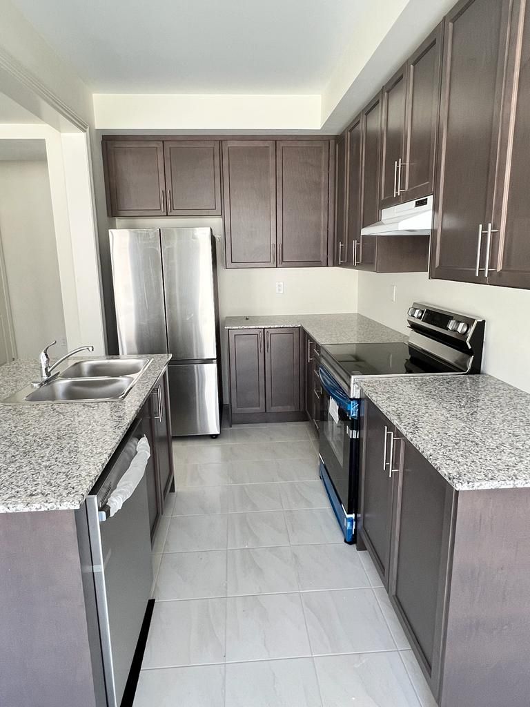 Beautiful brand new 4 bedrooms,3 washrooms,4 car parking freehold town home in Oshawa.Main double door entry.Extra deep premium lot with no sidewalk.9ft ceilings on main and 2nd level,10ft coffered ceilings in principal bdrm.Hardwood on main floor & staircase,electric fireplace,extended upper kitchen cabinets.4 bedrooms upstairs, principal bedroom w/double closets,double sinks, frame less glass shower.Upstairs laundry, linen closet,unfinished basement,Garage access door.Stainless steel appliances,AC. Tenant to pay all utilities incl water,hydro,gas, HWT rental.