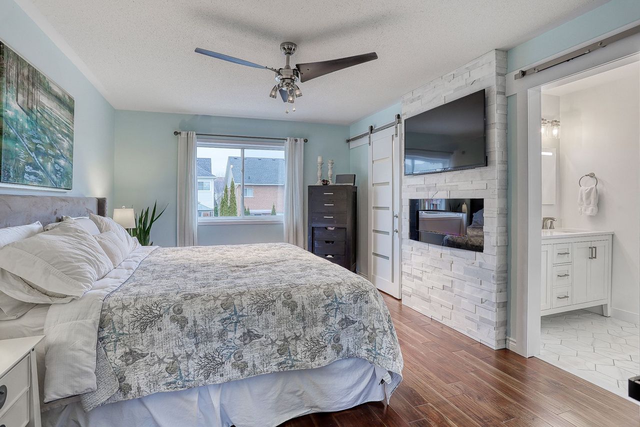 Welcome to a stunning 3-bedroom home in North Oshawa, where modern finishes and thoughtful design come together seamlessly. Upon entry, a spacious walk-in closet in the foyer ensures a well-organized space for your coats and shoes. The main floor features hardwood floors throughout, creating a warm and inviting ambiance. The open-concept kitchen has been tastefully renovated, offering a perfect blend of style and functionality. Upstairs, the primary bedroom is a retreat with barn doors, a renovated washroom, and a cozy fireplace. The finished basement includes a versatile rec room and an additional bedroom. Outside, a large deck with a gazebo and an inground saltwater heated pool create an inviting outdoor space. The outdoor bar is a highlight, complete with hydro, a solid concrete top, and a self-draining ice bucket trench. This home is designed for comfort and entertainment, with attention to detail evident throughout.Conveniently located near schools, shopping, and the 407, this residence offers both style and practicality. Don't miss the opportunity to experience the charm of this North Oshawa gem—schedule your showing today!