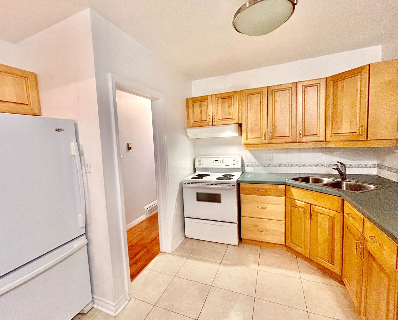 Move-In Ready! Bright Spacious Lovely 3 Bedroom Upper Level Apartment, With beautiful Backyard and Deck, Eat-In Kitchen . Fully upgraded and beautiful Bathroom with modern cabinets. Separate laundry in the kitchen. Hardwood Flooring, Large Closets, 4 Pc Bathroom, 2 Driveway Parking and new interlock. Main floor has access to the backyard.Fridge, Stove and separate Washer And Dryer on the kitchen. Tenant Pay 60% Of Utilities. 2 Parking Spots on the driveway.