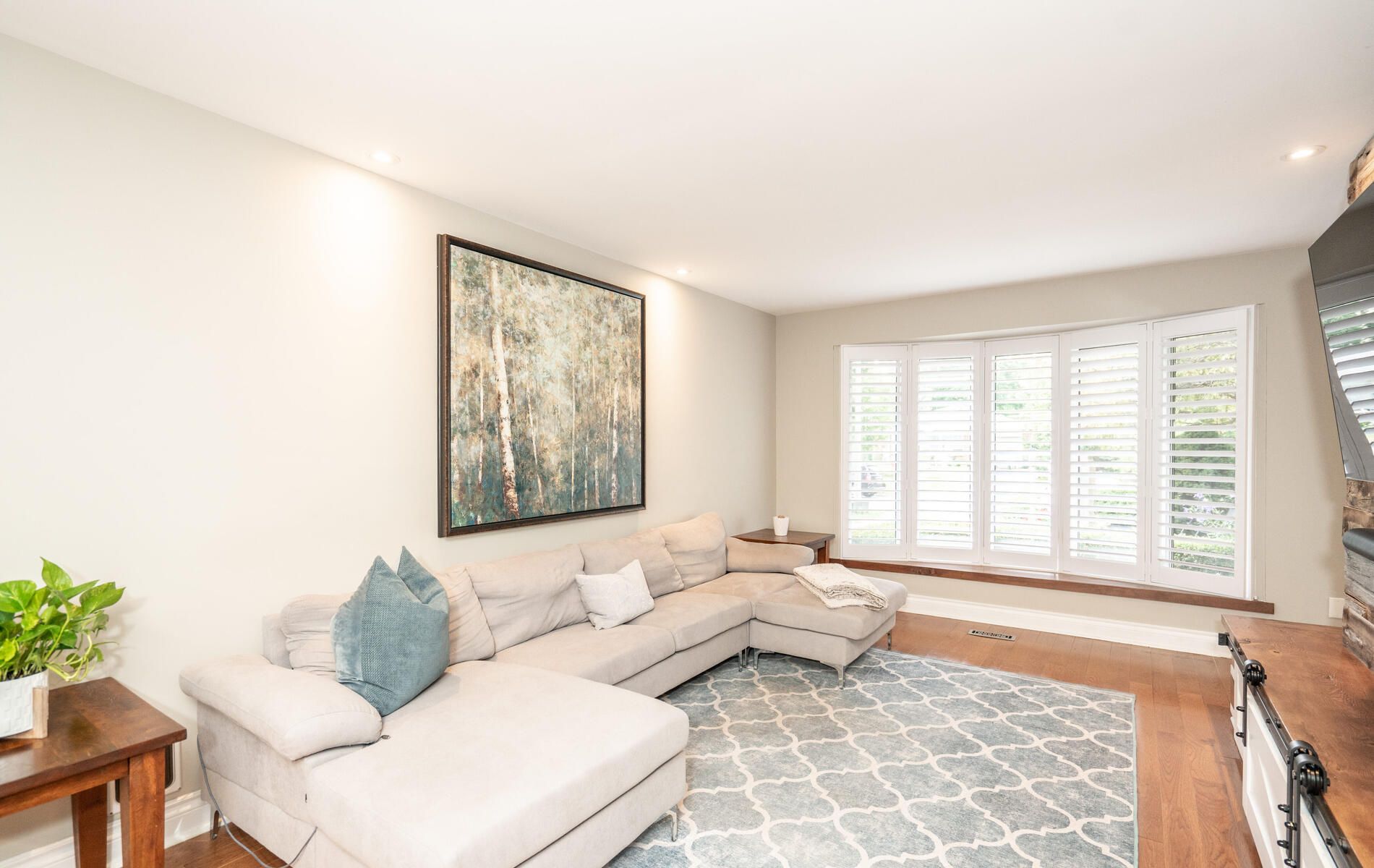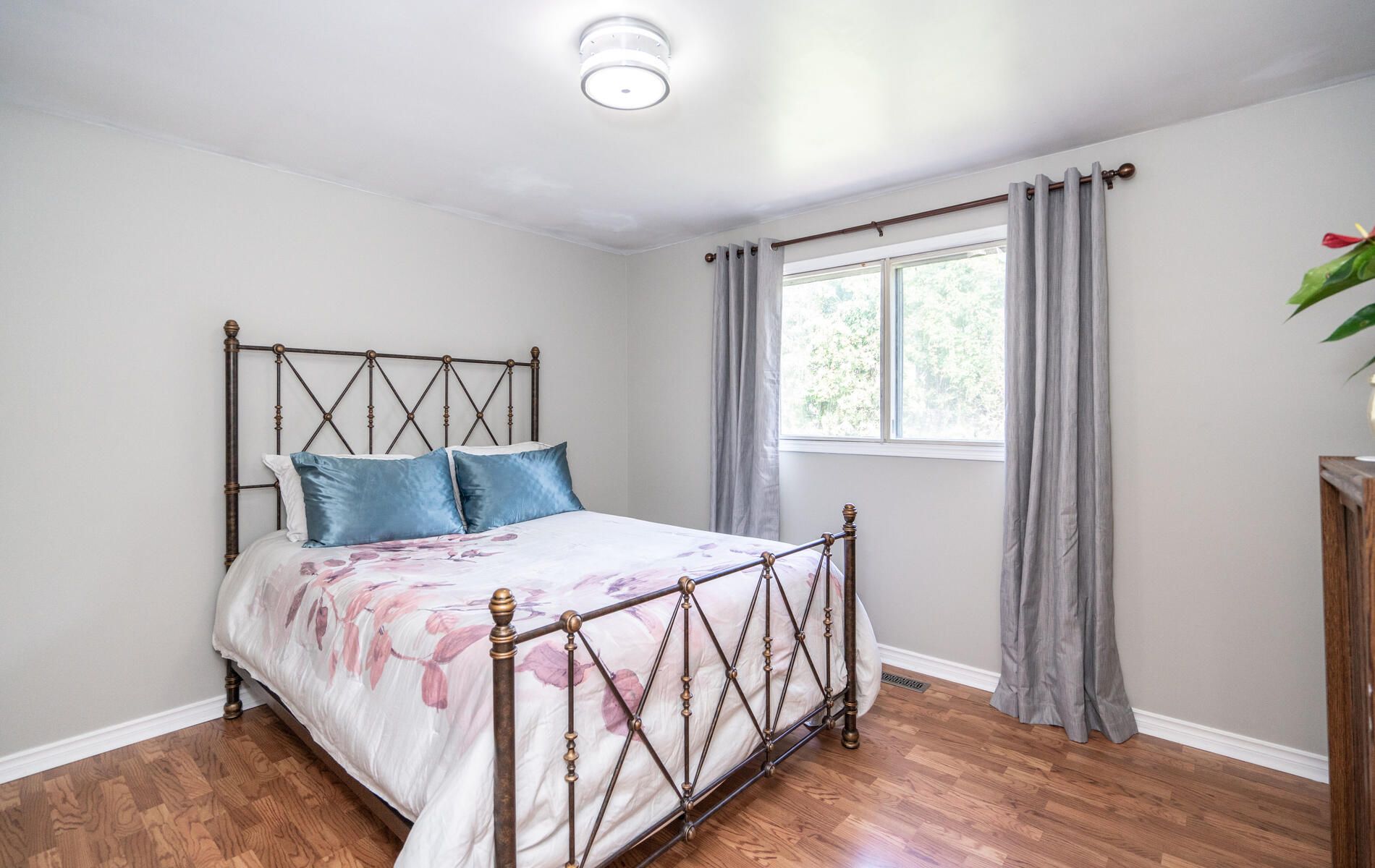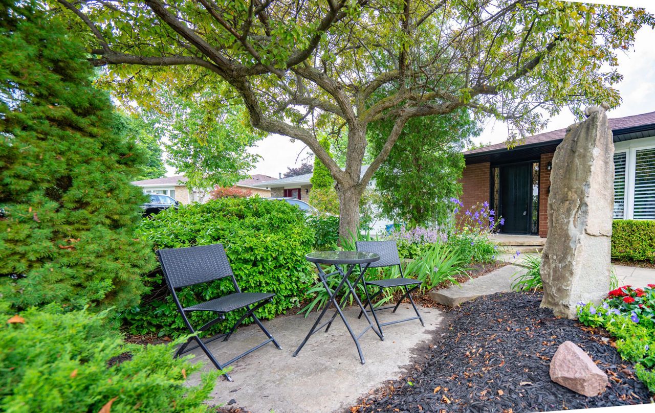 Look no further than this beautiful 3 bedroom backsplit. Spectacular built-ins in the family room with a bay window and seating that overlooks the landscaped yard, open concept to dining area with walk-out to the patio. Kitchen has hickory cabinets, tumble marble backsplash, granite counters, pot drawers, breakfast bar & yard access. Hardwood floors on main and basement levels, Renovated spa like bathrooms-main with towel warmer. Primary bedroom has walk-in closet with organisers. Basement is an open finished space with a cozy wood burning stove, storage area and playroom. All new windows (except at the back of the house). New front, patio and garage doors. Garage is fully insolated/drywalled with epoxy flooring and additional side door yard access. Drive is stamped concrete with walkway leading to the house. Backyard is fenced and private. Home is centrally located on a cul-de-sac surrounded by schools, shops, grocery stores, parks, recreation centre, medical facilites, transit, etc.Family Room mounted TV negotiable, Primary Bedroom mounted TV negotiable, Garage mounted TV negotiable. Architectural Drawings available for expansion suggestions