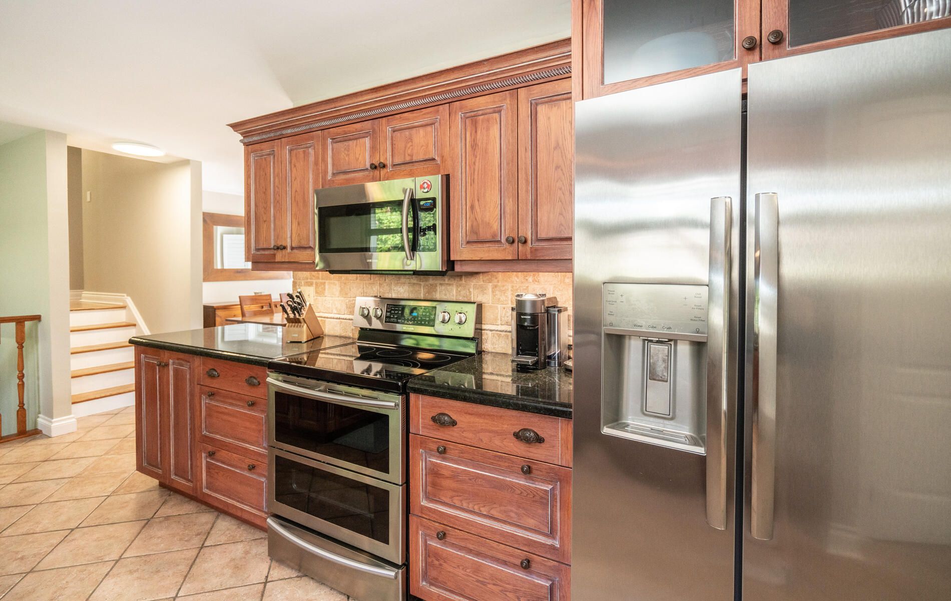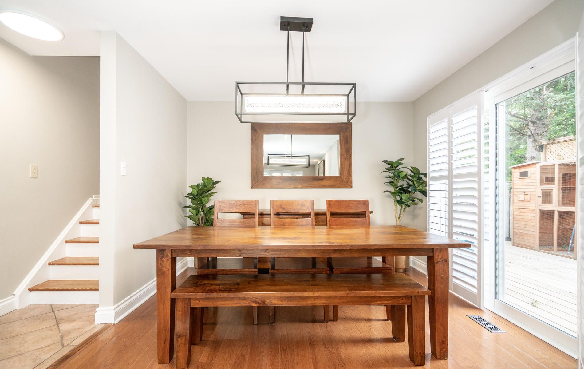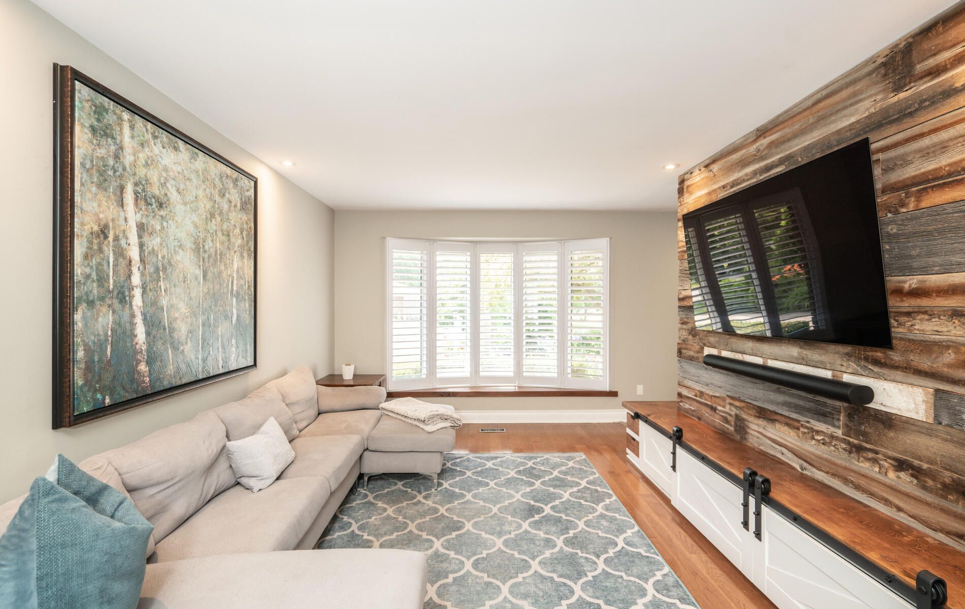 Look no further than this beautiful 3 bedroom backsplit. Spectacular built-ins in the family room with a bay window and seating that overlooks the landscaped yard, open concept to dining area with walk-out to the patio. Kitchen has hickory cabinets, tumble marble backsplash, granite counters, pot drawers, breakfast bar & yard access. Hardwood floors on main and basement levels, Renovated spa like bathrooms-main with towel warmer. Primary bedroom has walk-in closet with organisers. Basement is an open finished space with a cozy wood burning stove, storage area and playroom. All new windows (except at the back of the house). New front, patio and garage doors. Garage is fully insolated/drywalled with epoxy flooring and additional side door yard access. Drive is stamped concrete with walkway leading to the house. Backyard is fenced and private. Home is centrally located on a cul-de-sac surrounded by schools, shops, grocery stores, parks, recreation centre, medical facilites, transit, etc.Family Room mounted TV negotiable, Primary Bedroom mounted TV negotiable, Garage mounted TV negotiable. Architectural Drawings available for expansion suggestions