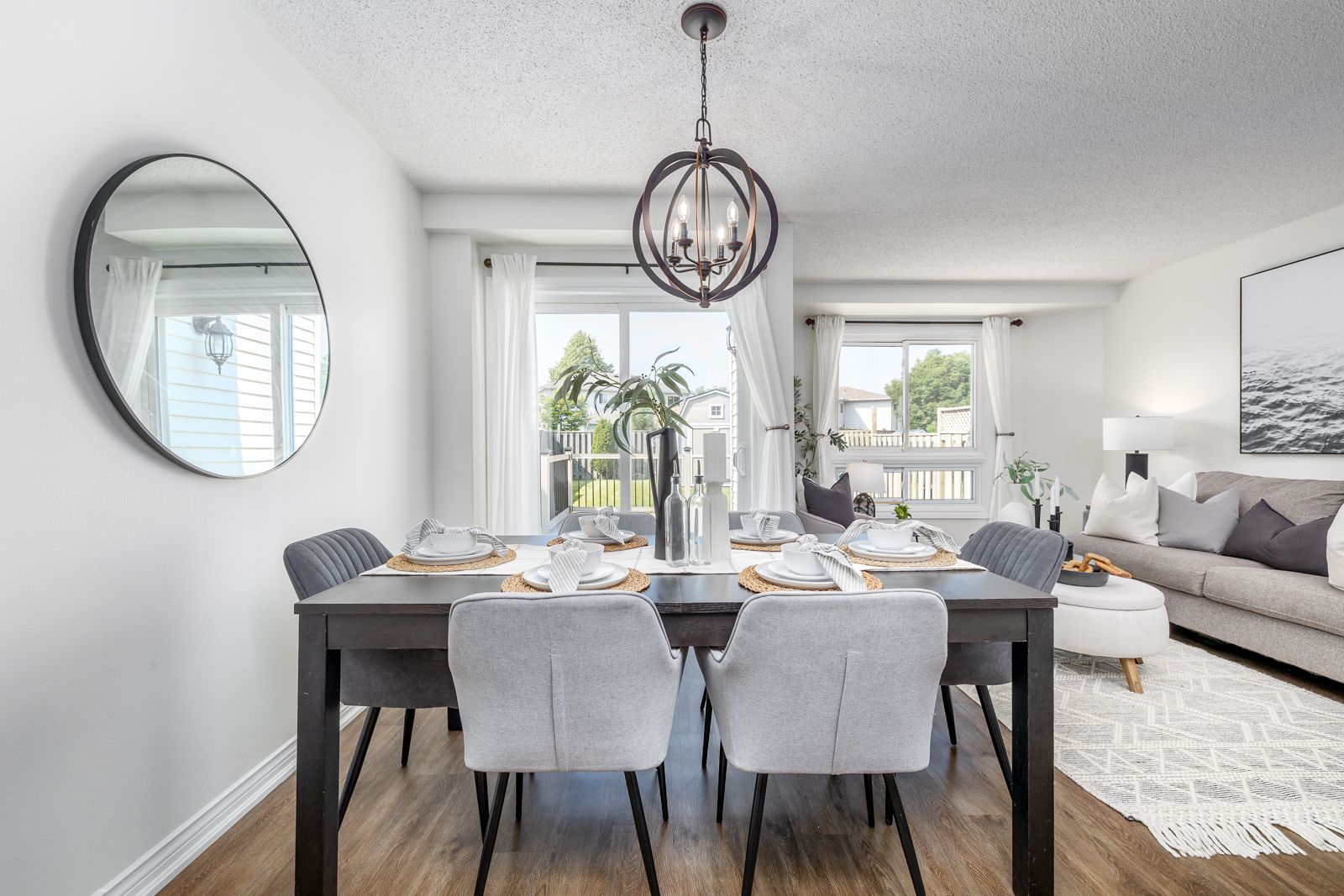 Welcome to 1483 O'Hara Crt.! This lovely three-bedroom home is nestled in a peaceful court just steps from the beautiful lakefront. Situated within a charming family-oriented neighbourhood, this property offers convenient access to a range of amenities, including the GO Train, Highway 401, Renaissance Park, Community Center, Shops and the picturesque Lake Ontario Bike Trails. On the main level, you'll be greeted by an inviting open concept design equipped w/ sophisticated dark flooring. The living room features a convenient walkout that leads to the fully fenced and generously sized backyard w/ deck boasting wrought-iron spindles, providing ample space for outdoor living. The inviting eat-in kitchen is both fresh & bright, featuring recent upgrades such as: new floors, LG stainless steel appliances, a tasteful backsplash, & modern cabinets, all thoughtfully selected. On the upper level, you'll find three comfortable bedrooms, each offering ample closet space to meet your storage needs.This home boasts a fully renovated bathroom, which showcases new flooring, and an elegant vanity. The property has updated light fixtures and a fresh coat of paint throughout, adding to the overall brightness and charm of the space.