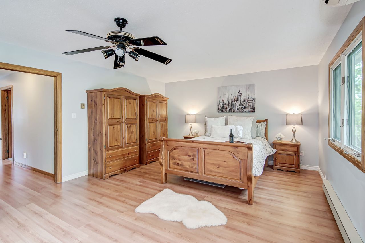 Welcome to this gorgeous 4 bed, 3 bath home in the desirable Donevan neighbourhood! This home boasts a bright main floor with a large living/dining room combo, a bedroom, 4 piece bath & a home office. Walk-out from your office to your very own heated year-round 14'x21' greenhouse. This home features 3 large bedrooms on the upper floor. The oversized primary bedroom features a walk-out to your private deck, perfect for enjoying your morning coffee, large closets & a 5-piece ensuite. The ensuite includes a jacuzzi tub, separate shower and double sinks. The separate entrance leads to your spacious fully finished basement with a kitchen, gas fireplace, 2-piece bath & laundry room with loads of storage. The private fully fenced backyard has 2 large sheds (one heated) & a large deck perfect for entertaining. Park your car in the heated garage or make your own man cave! Driveway is extra wide with an interlock patio (2022). Close to schools, parks, shopping, Hwy 401/407 & all amenities.Hardwood under main level flooring/carpet. HWT owned. Main & lower level are heated and cooled with forced air gas. Second floor is heated by baseboard unit, air conditioning is an electric ductless unit.