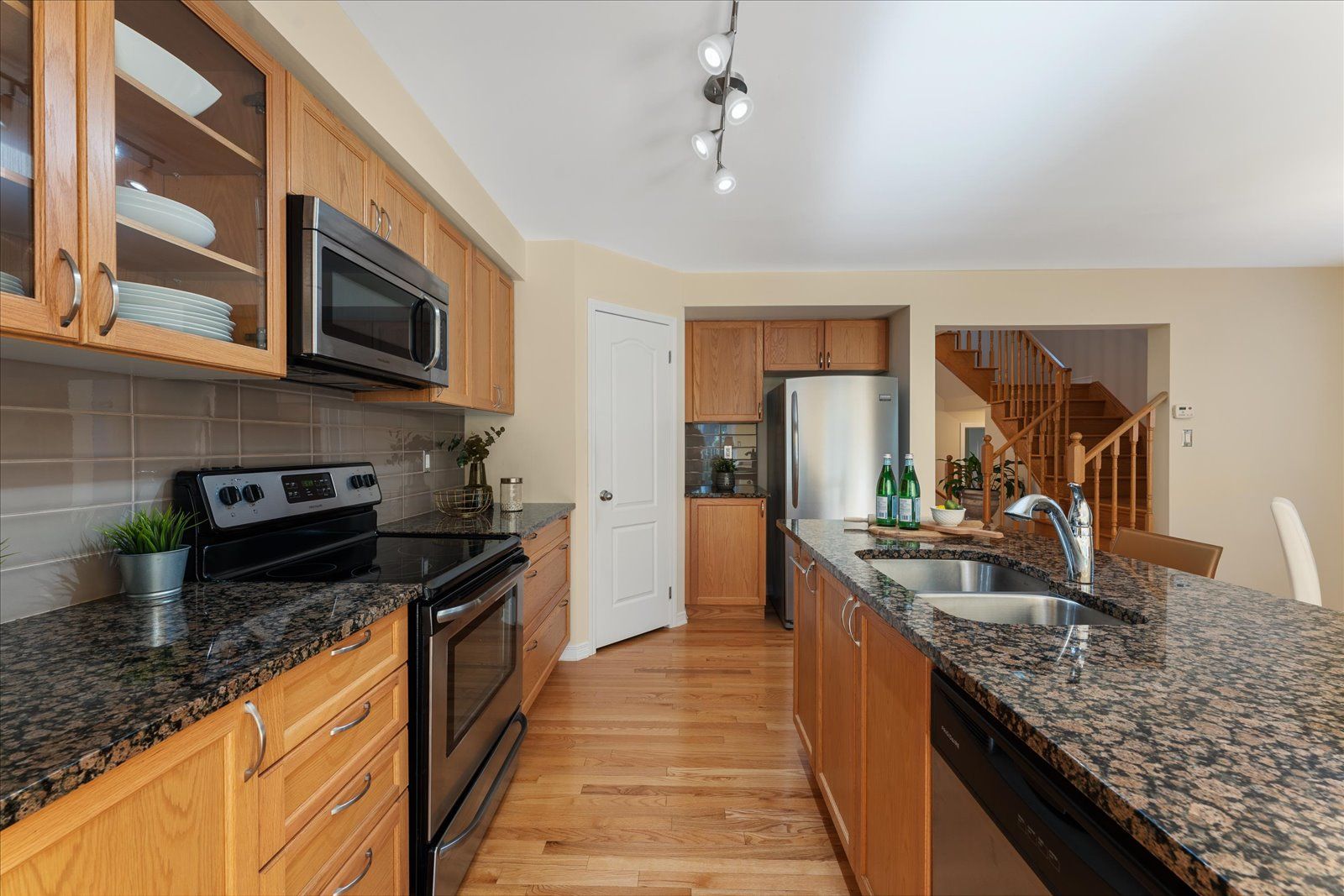 Introducing the "Applewood" model located in the prestigious Parkridge Forest, an exclusive community of low-density townhomes. Nestled within a serene forested ravine, this end unit home offers a picturesque setting. Over 1700 square feet, the main two floors provide ample living space, while an additional builder-finished walk-out basement with a gas fireplace expands the total living area to over 2000 square feet. Upon entering, you'll be greeted by the elegance of wood flooring throughout the principal rooms. The open-concept design of the main floor features a spacious great room with a Juliette balcony, offering stunning views of the gardens and ravine. The well-designed kitchen has a full-size breakfast bar, a walk-in pantry, and a dedicated dining space, ensuring functionality and style. Impeccably maintained, this home showcases meticulous attention to detail. Situated on a generously sized lot, privacy abounds, complemented by beautifully groomed landscaping.Convenient 2nd Floor Laundry and lots of storage throughout the home.