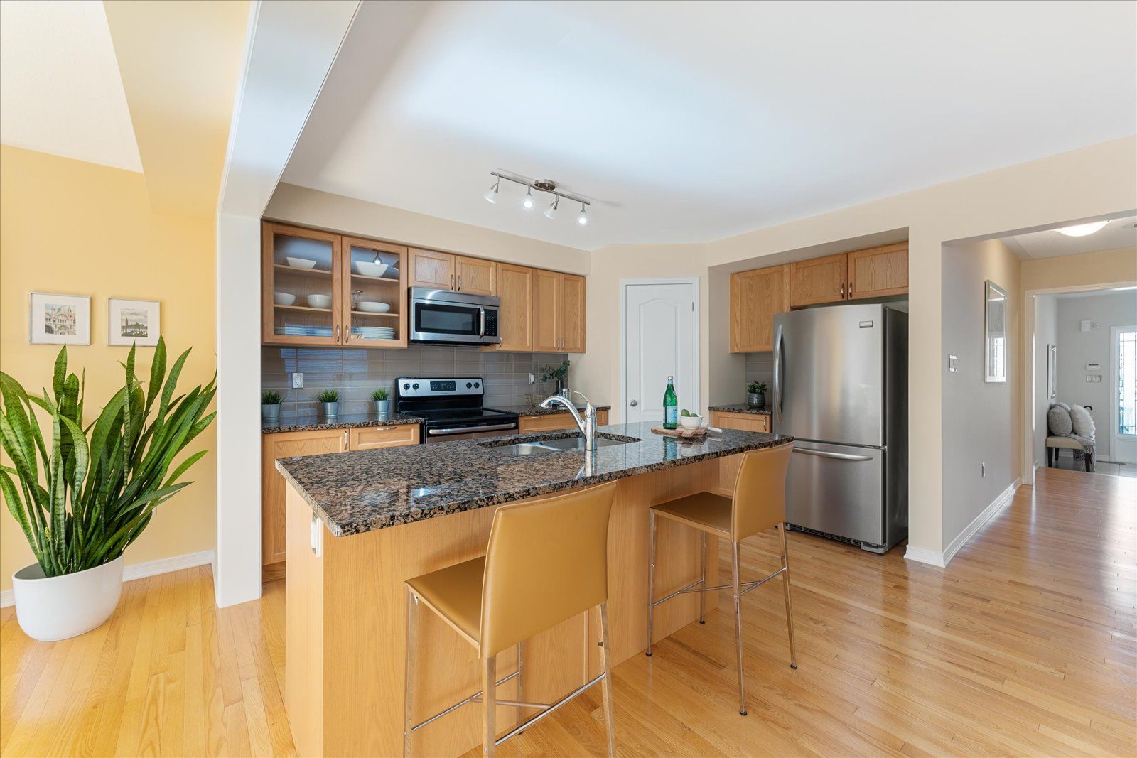 Breakfast Bar 2 Way Fireplace Hardwood Floor