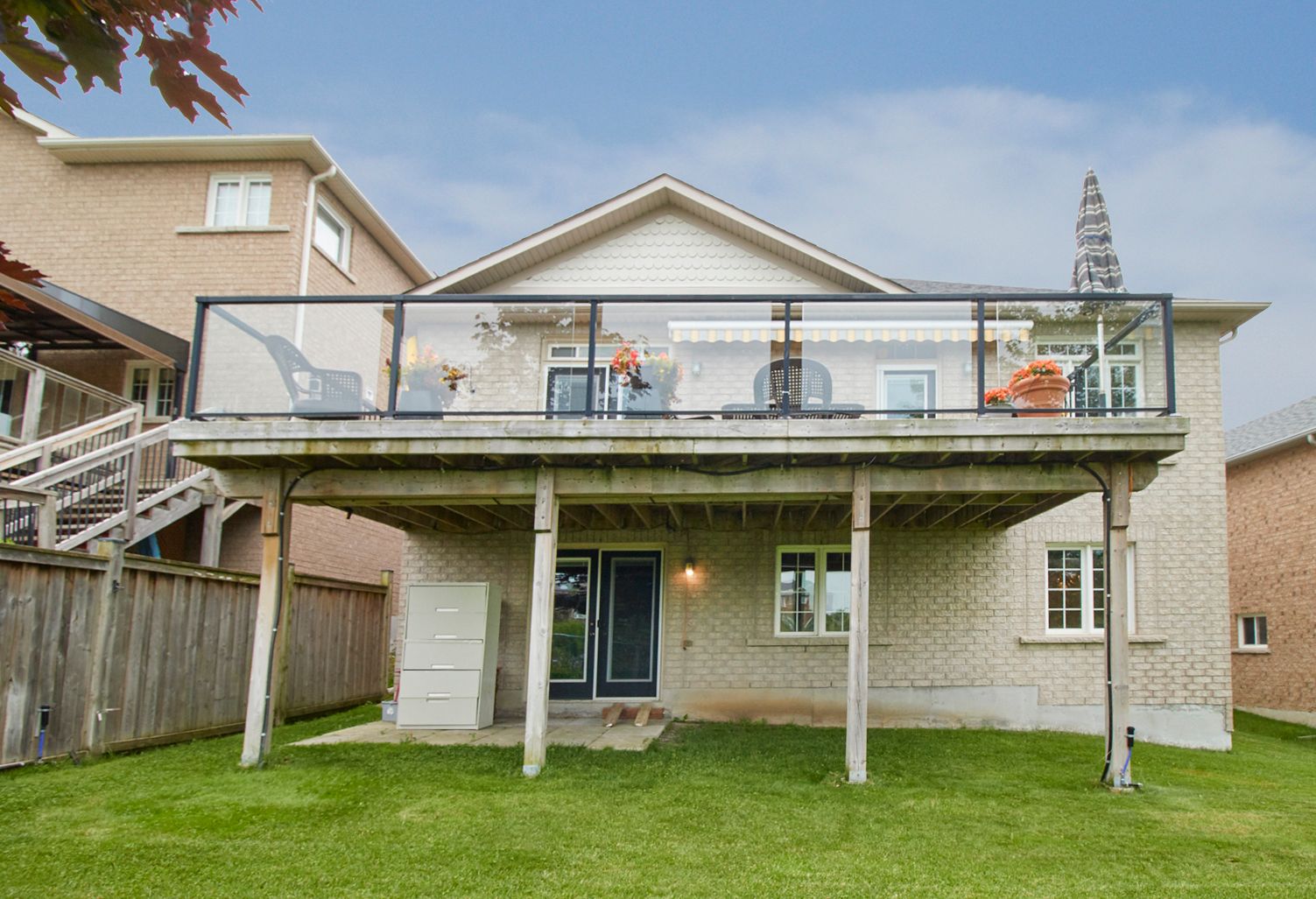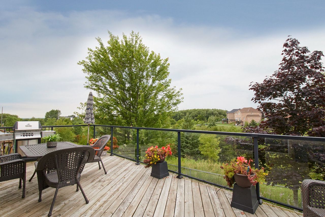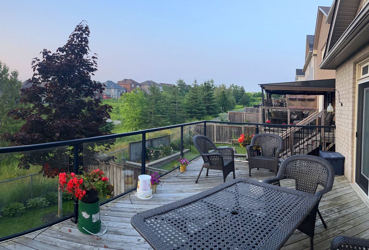 Stunning All Brick Bungalow Overlooking Pond, Greenspace and Situated in a Highly Coveted North Oshawa Neighborhood. Enjoy Sunsets on the Large Deck with Custom Retractable Canopy and 2 Walk-Outs. Professionally Landscaped Front Yard with 5 Zone Sprinkler System. Gorgeous Hardwood Floors, High End Built in Stainless Steel Appliances, California Shutters, Pot Lights, Transom Windows, 9ft High Ceilings, Gas Fireplace and Large Master Bedroom with 5 pc Ensuite with Separate Shower and Soaker Tub. Upgraded Double Front Door with Phantom Screen. Double Door Walk Out to Pie Shaped Lot . Large Picture Windows Provide Lots of Natural Light in the Basement. This is a Beautiful, Upgraded and Well Maintained Home in Move-in Condition. Flexible Closing Available.Furnace 2022, Washer & Dryer 2022, Roof 2022, Retractable Awning(2020) Rough- In in Basement, 5 Zone Sprinkler System, Incredible Sunsets and Tranquil Views of Pond & Greenspace from the Back Deck. Professionally Landscaped Front Yard.