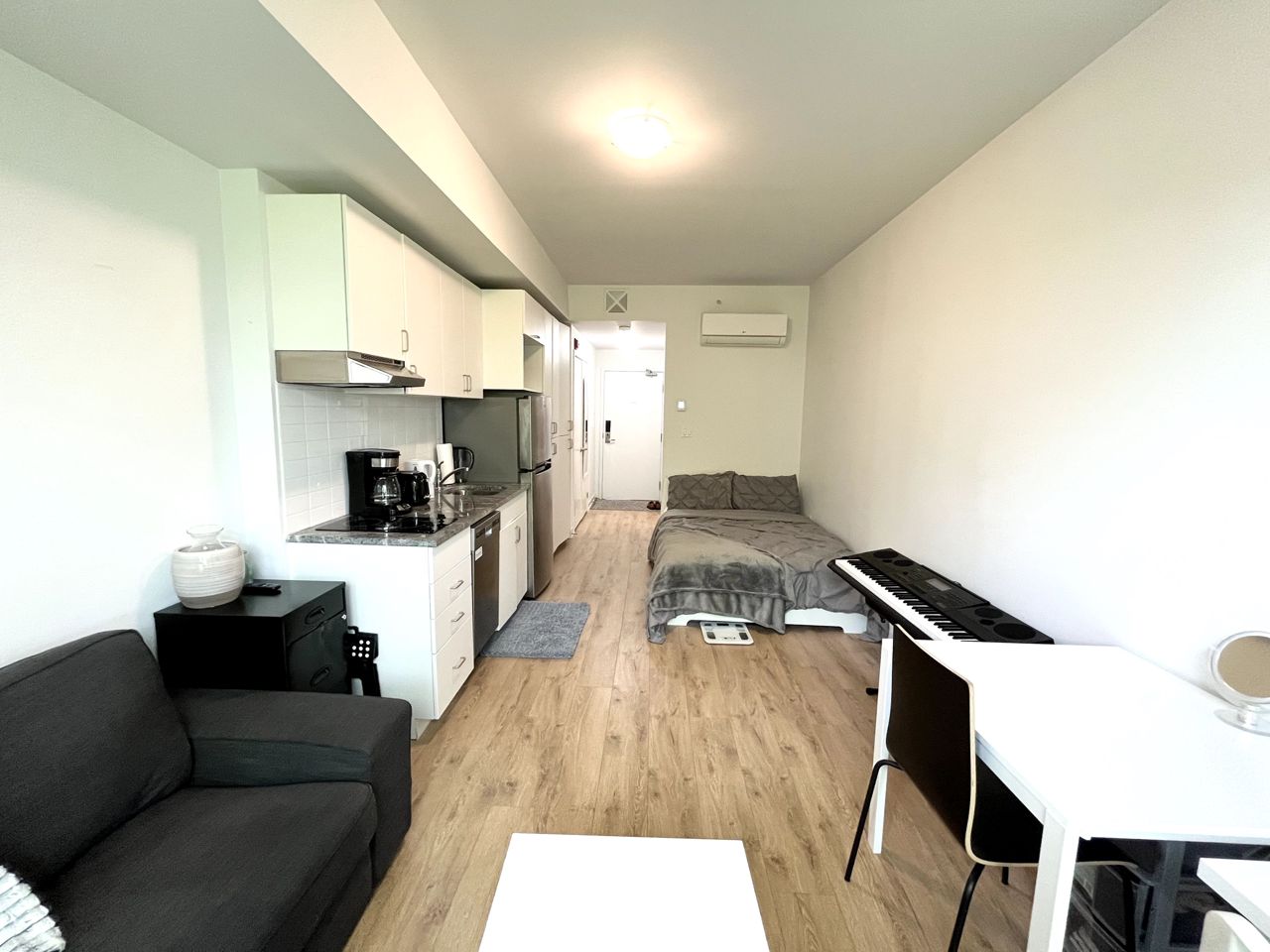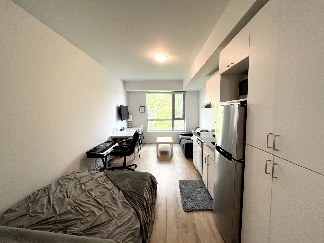 Excellent Investment Opportunity or Affordable Condo home. Only Steps From Durham College & Ontario Tech University & Amenities. This Bachelor Studio Includes Everything You Need To Get Started! All Existing Appliances & Furniture Are Included! Building Amenities Include Games Room, Yoga Room, Private & Group Study Rooms, Gym, Student Social Lounge & Rooftop Patio. Wifi Building. Quality tenant is month-to-month lease would love to stay.Fridge, Two Burner Electric Range Stove, Washer, Dryer, Dishwasher, Microwave. 2 Dining Chairs, Couch, Coffee Table, Tv And Bracket, Bed, Mattress Protector, Desk, Chair