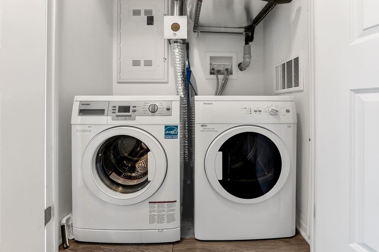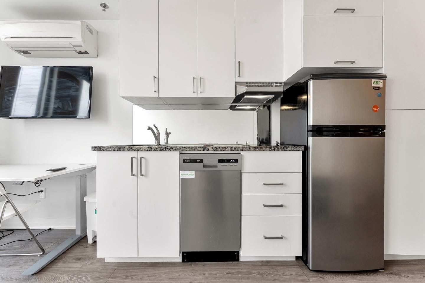 Modern, Furnished Studio Unit Walking Distance From Uoit/Durham College. Steps Away From Main Public Transit And Restaurants. Several Available Amenities Including Concierge, Media/Meeting Room, Gym, Visitor Parking. Fully Furnished Unit. Built In Bed W/ Mattress, Love Seat Sofa, Coffee Table, Office Desk, 2 Chairs, Wall Mounted Tv, Ss Fridge, Dish Washer, 2 Burner Stove, Range Hood, Front Load Washer, Dryer, Roller Blinds And Free Wifi Connection.Cold Water charge and hydro in addition to monthly rent. Cable is not Included.