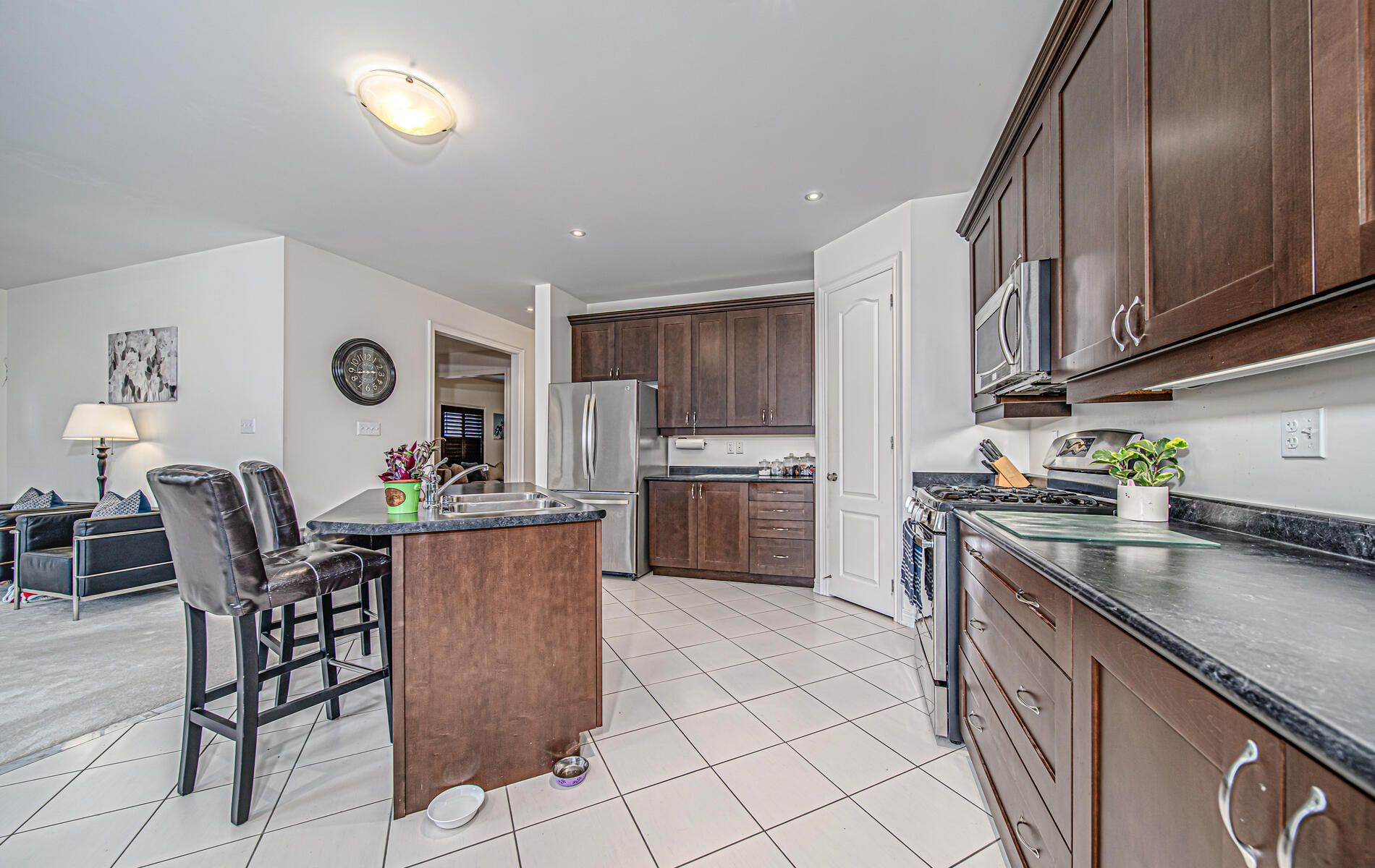 Indulge in the perfection of family living with this spacious, immaculate 4 bed 4 bath residence located in the desirable and family-oriented North Oshawa. Facing a beautiful ravine with no neighbours across, this home offers a host of exquisite features, including over 3000 square ft of living space, 9-ft smooth ceilings, and a family room with a cozy gas fireplace. The home boasts a generous entryway which opens to a large living and dining room. The spacious eat-in kitchen has an elongated countertop, walk-in pantry and island with built in dishwasher and sink. Upstairs you will find an extra large primary suite with 4 pc bath and walk in closet. 2 bedrooms share a jack-and-jill bath, and another bedroom showcases its own separate 4 pc bathroom. Enjoy the comfort of a 3-ton central air system, on-demand hot water for long showers, and the added elegance of Hunter Douglas' top-of-the-line wood shutters. The unfinished basement has a roughed-in bathroom and painted floors.Hunter Douglas shutters throughout Hot water on demand- doesn't lose pressure or heat Rough in for bathroom in basement Upgraded railings, broadloom, smooth ceilings, gas fireplace on main