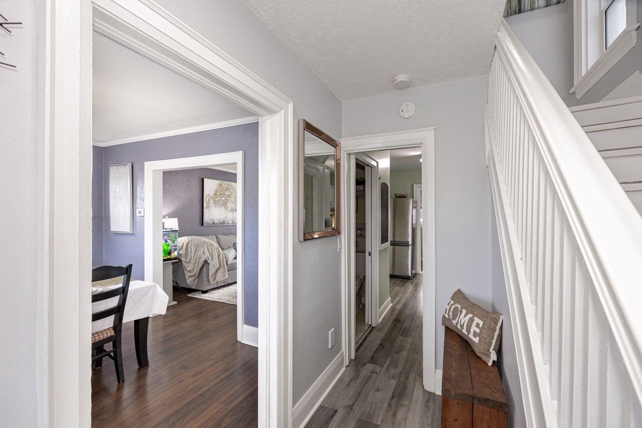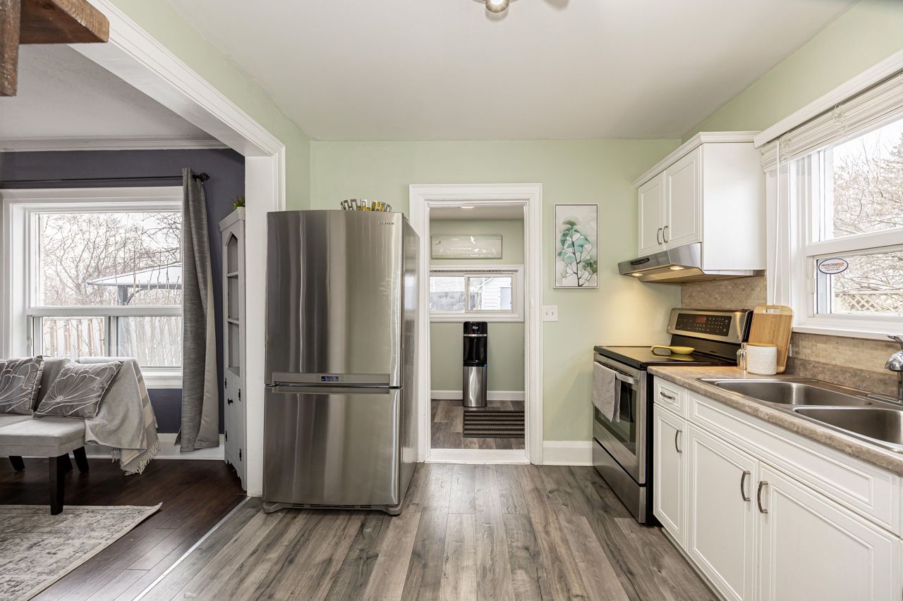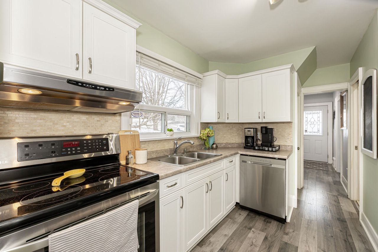 WELCOME to your charming new home! Notice the warm characteristics of high ceilings with crown molding, piano windows enhancing the dining room and foyer. Laminate flooring throughout. Newer stainless steel kitchen appliances, fully insulated mudroom adds additional pantry space for your kitchen. Newly updated 4 piece washroom with porcelain floors and wall tiles, quartz counter, linen closet. The deep backyard offers privacy with no neighbours behind, beautiful gardens, extra parking for trailers, toys, cars, etc. Garage for car or storage. The opportunities are endless. A few items worth mentioning: Newer Eaves Troughs, New Front Porch Railing, Back Porch has a New window, Door, & Insulation, Newer Washer, Air Conditioner 2020, Furnace 2016 with New Napoleon Motor in 2021 (5 year warranty). Convenient location close to transit, 401, GO, shopping, amenities. This home is ideal for first time homebuyers or someone downsizing. A must see!