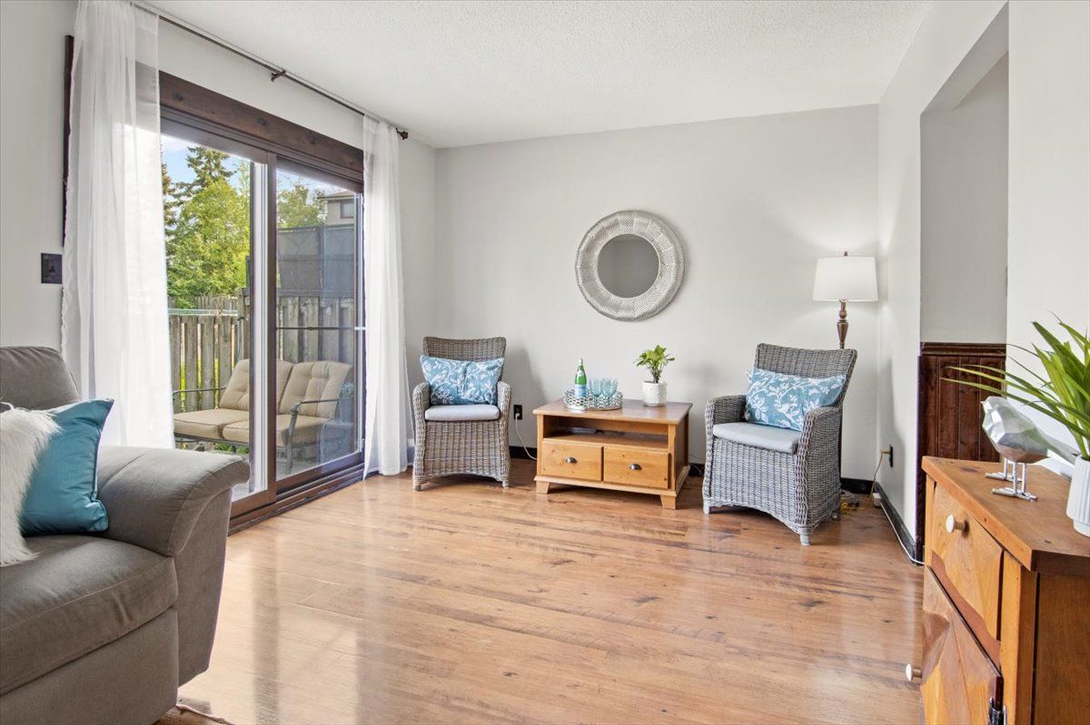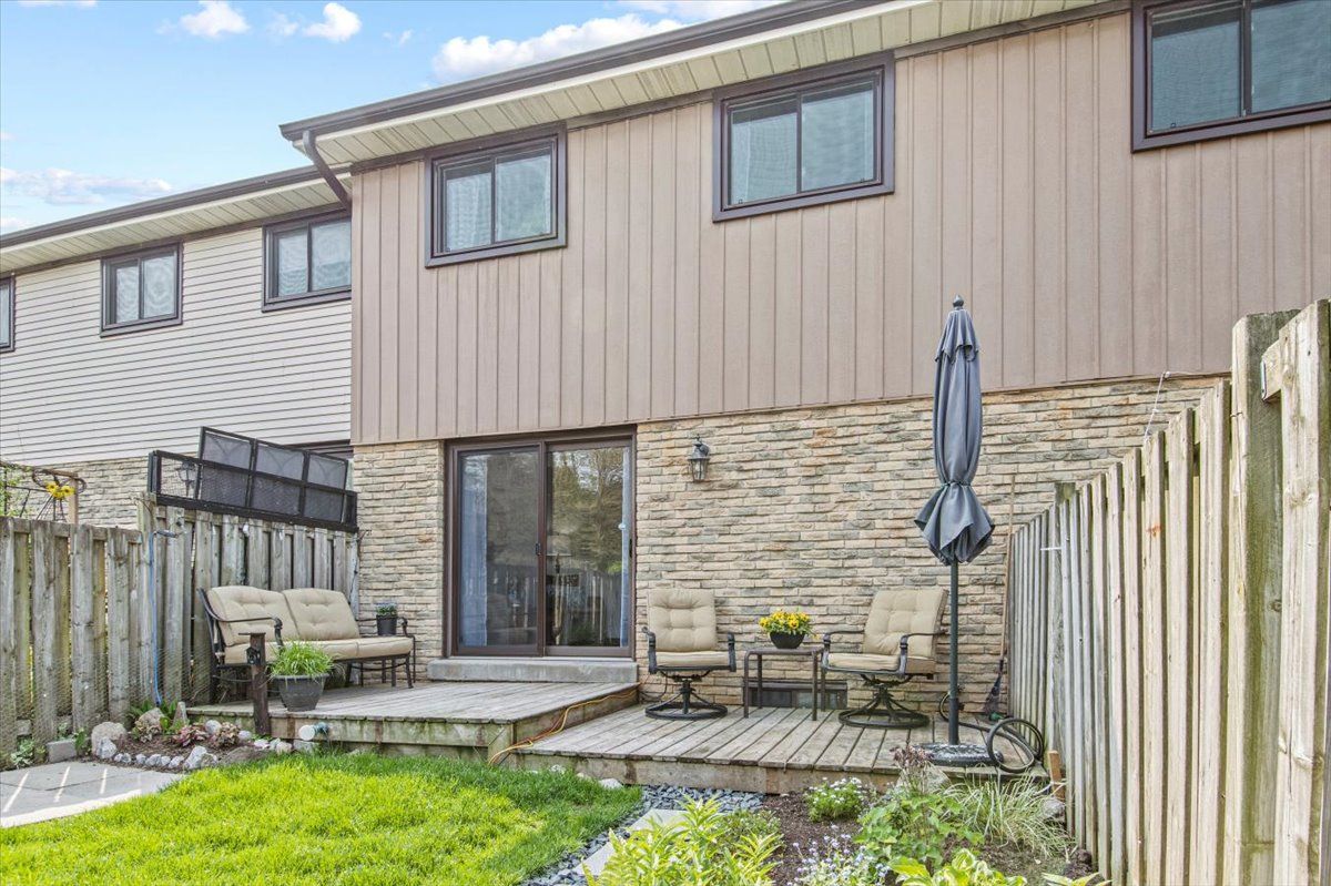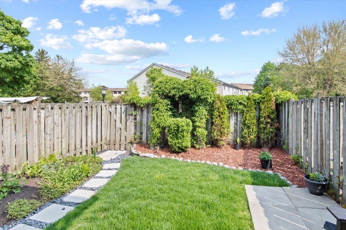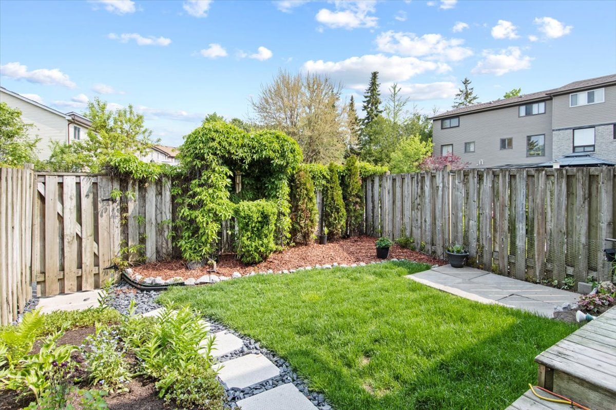 Perfect starter or investment property! 3-bedroom/ 2 bath townhome with low fees in a family friendly neighbourhood. Freshly painted, eat-in kitchen, stainless steel appliances, and a lovely finished lower family room – you will feel like you are in a log cabin with a convenient bathroom. Walkout to deck and fenced yard with a great east/west exposure. This quiet complex is walking distance to pubs, shopping, grocery and the top real estate office in the area. 407 is min away and transit stops right in front.Why pay rent when you can live in an affordable home for less. Heat/ hydro approx. $140/mth.