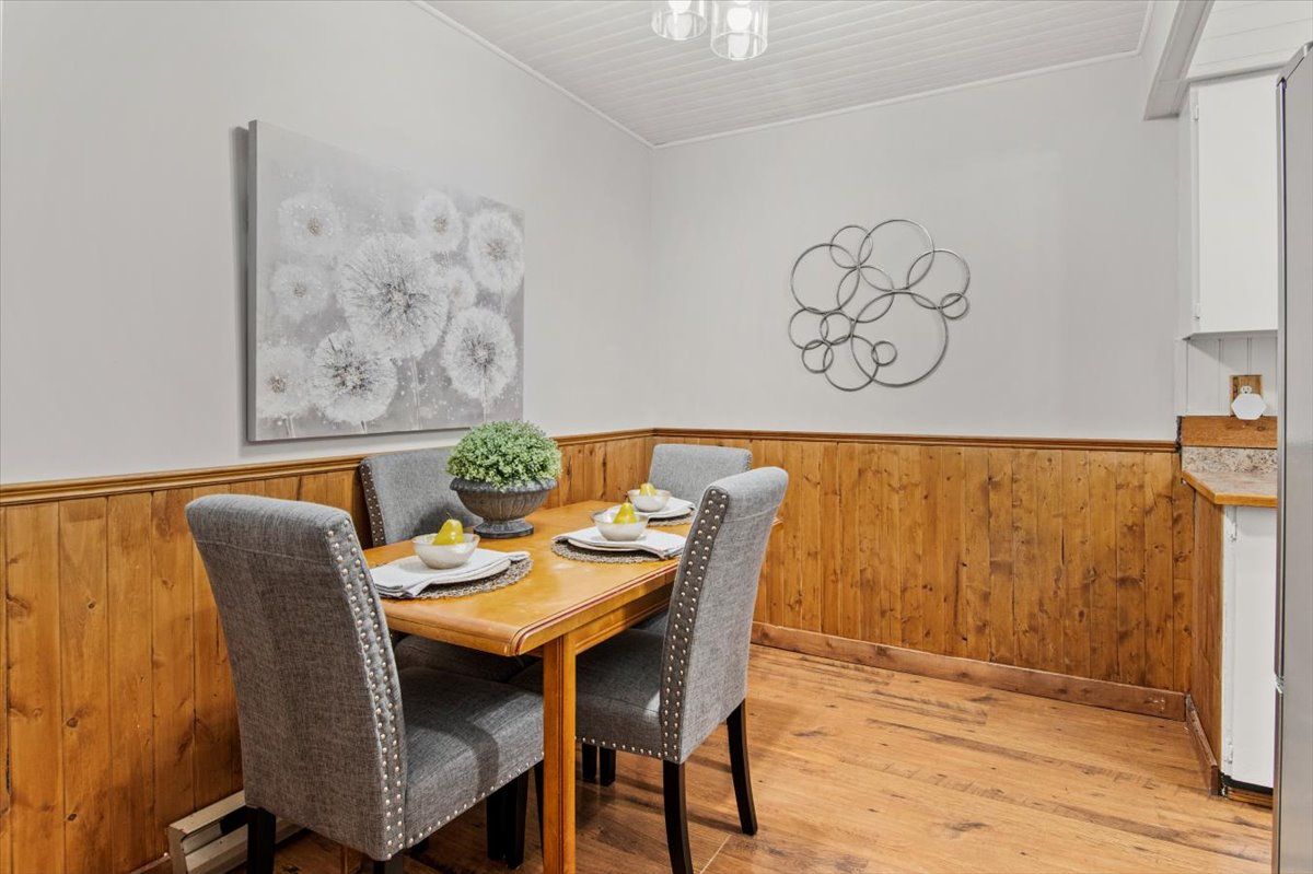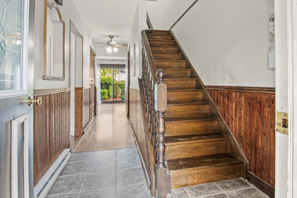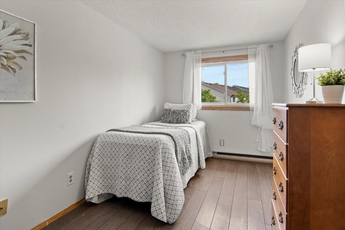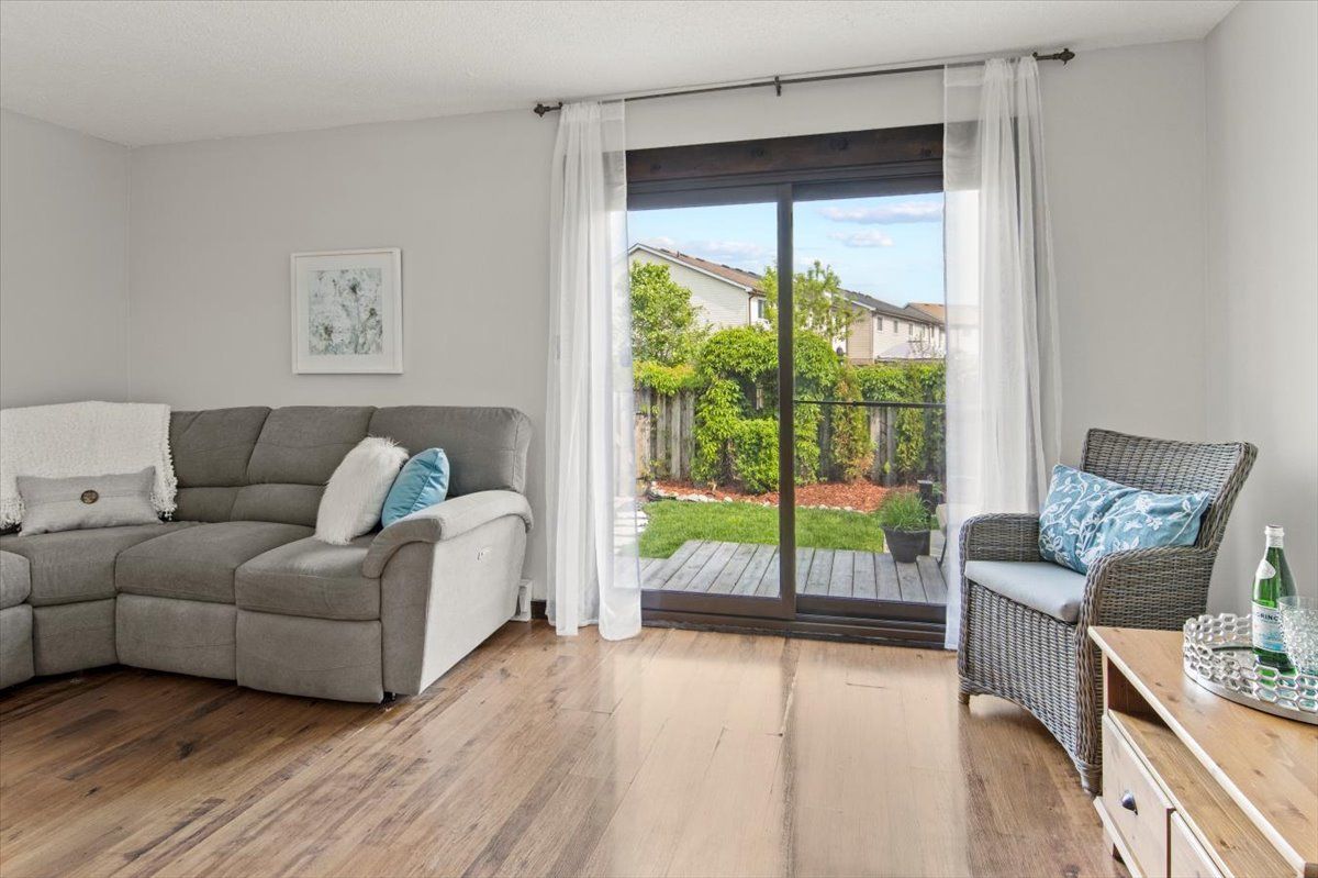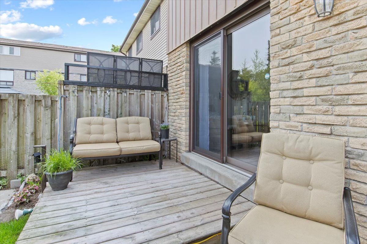 Perfect starter or investment property! 3-bedroom/ 2 bath townhome with low fees in a family friendly neighbourhood. Freshly painted, eat-in kitchen, stainless steel appliances, and a lovely finished lower family room – you will feel like you are in a log cabin with a convenient bathroom. Walkout to deck and fenced yard with a great east/west exposure. This quiet complex is walking distance to pubs, shopping, grocery and the top real estate office in the area. 407 is min away and transit stops right in front.Why pay rent when you can live in an affordable home for less. Heat/ hydro approx. $140/mth.