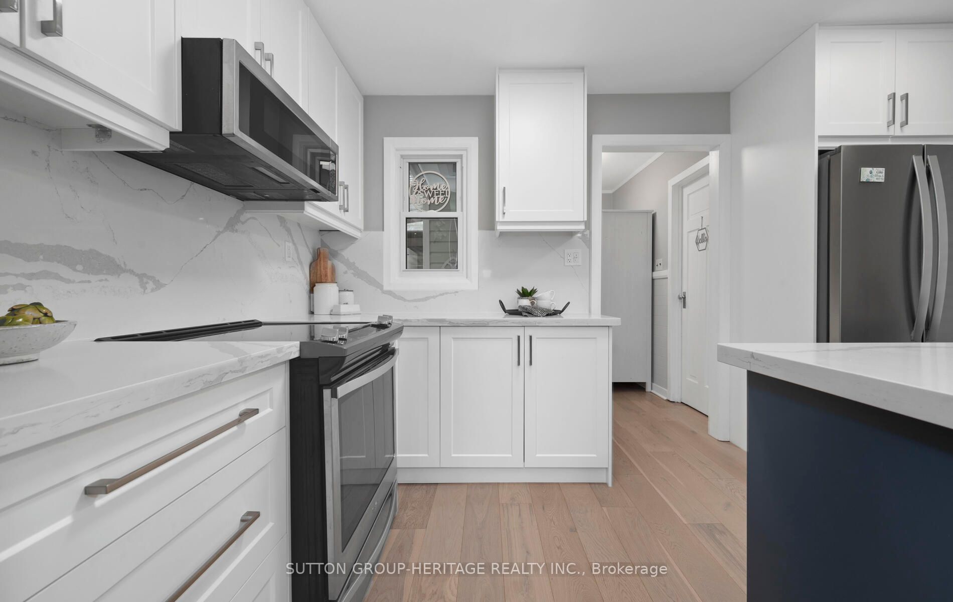 Unbelievably Chic & Trendy Complete Renovation On This Postcard Worthy Home That Is Perfect For First Time Homebuyers Or Downsizer's. Main Floor is Open Concept & Has New Hardwood Flooring, Flat Ceilings, Pot lights, Brand New Kitchen & Stainless Steel Appliances and New Bathroom To Stud! Freshly Painted With New Mouldings Throughout---Featuring 3 Spacious Bedrooms and Rear Entrance to The Home! House Was Converted By The Seller To Forced Air Natural Gas and Offers Newer Furnace and A/C.