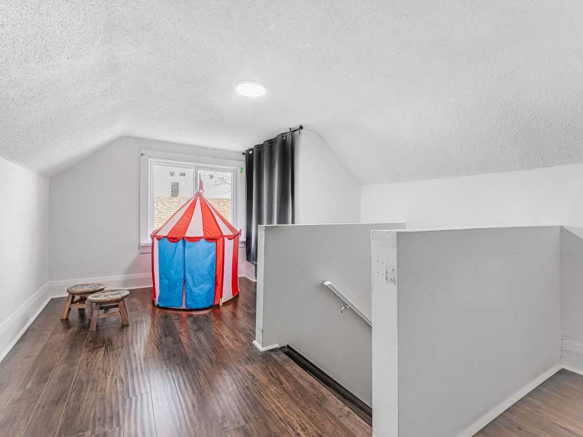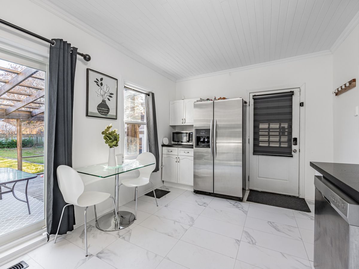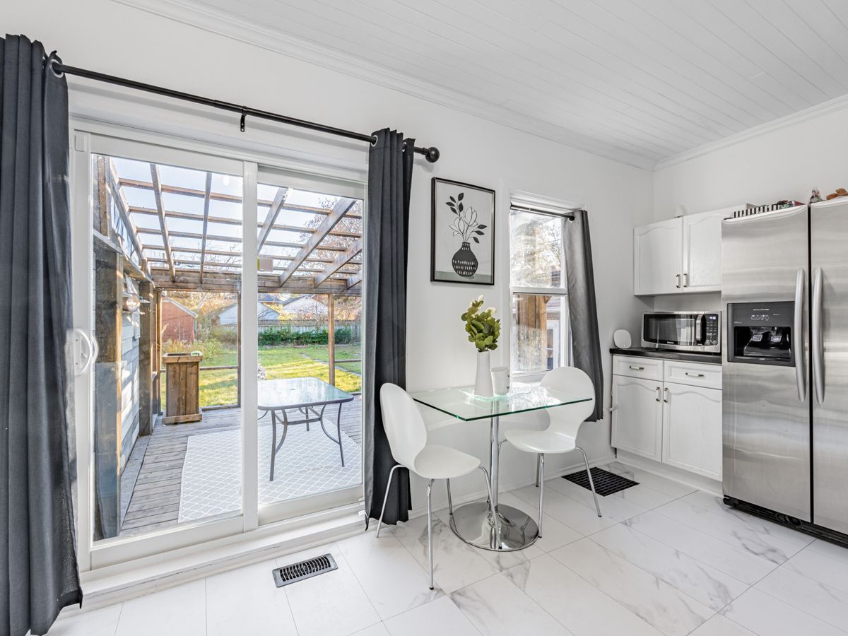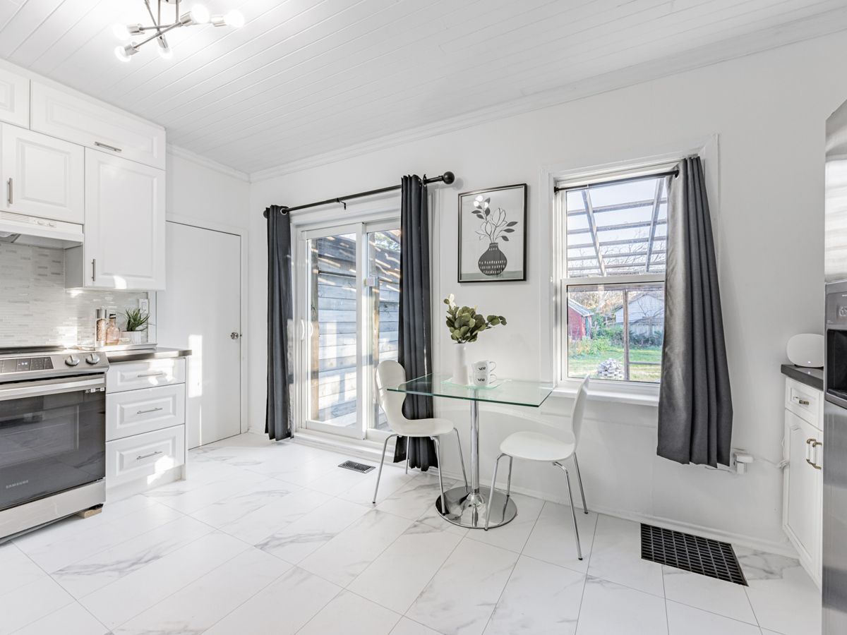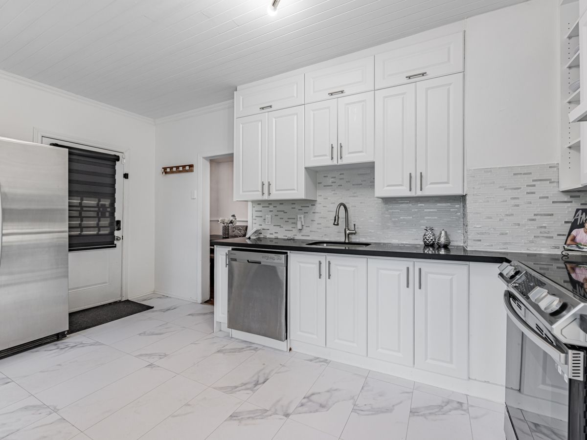Incredible value! Nicely-renovated home on a quiet street, only minutes from the 401, GoTrain, with a bus-stop around the corner. Double-sized lot, huge back yard, and a detached garage. Surprisingly-spacious home boasts a large, renovated kitchen, separate dining room and living rooms, a real family room, and one bedroom on the main floor (could be used as an office and/or is perfect for anyone who has issues with stairs.) Upstairs has a large hallway/playroom which leads to two spacious bedrooms. Front porch has been fully renovated, while in the back, the kitchen walks out to a large deck and a huge yard. Detached garage and double-driveway leave a lot of space for owner and visitor parking. Amazing opportunity, offers any time!Existing Refrigerator, New Stove (under warranty,) Built-In Dishwasher, New Washer (under warranty,) Clothes Dryer, Electric Light Fixtures. (Also - new bath-fitter bathtub, with warranty)