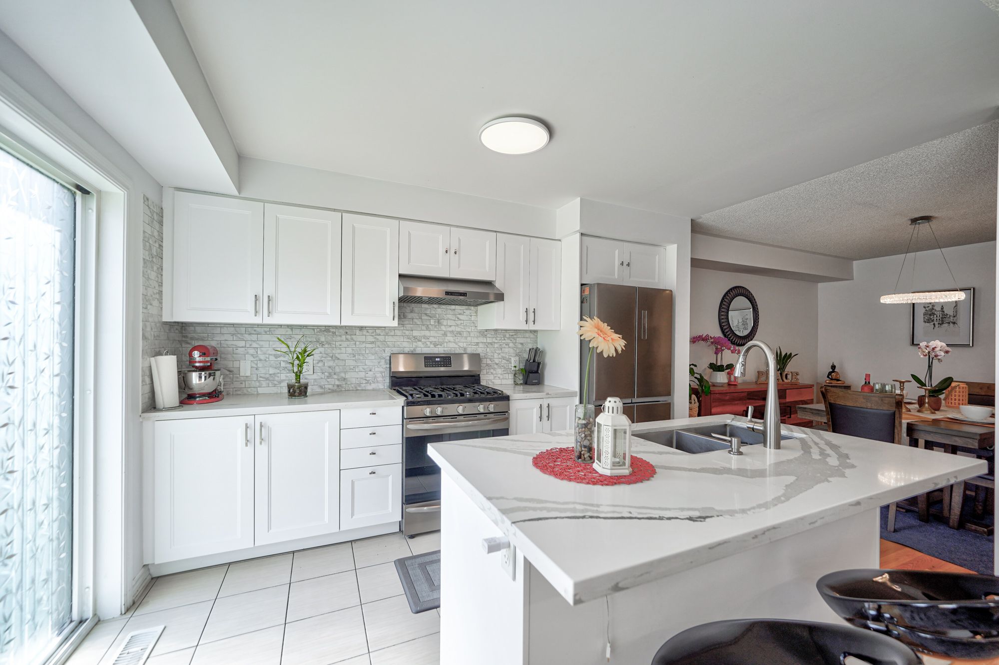 Ceramic Floor Breakfast Bar Stainless Steel Appl