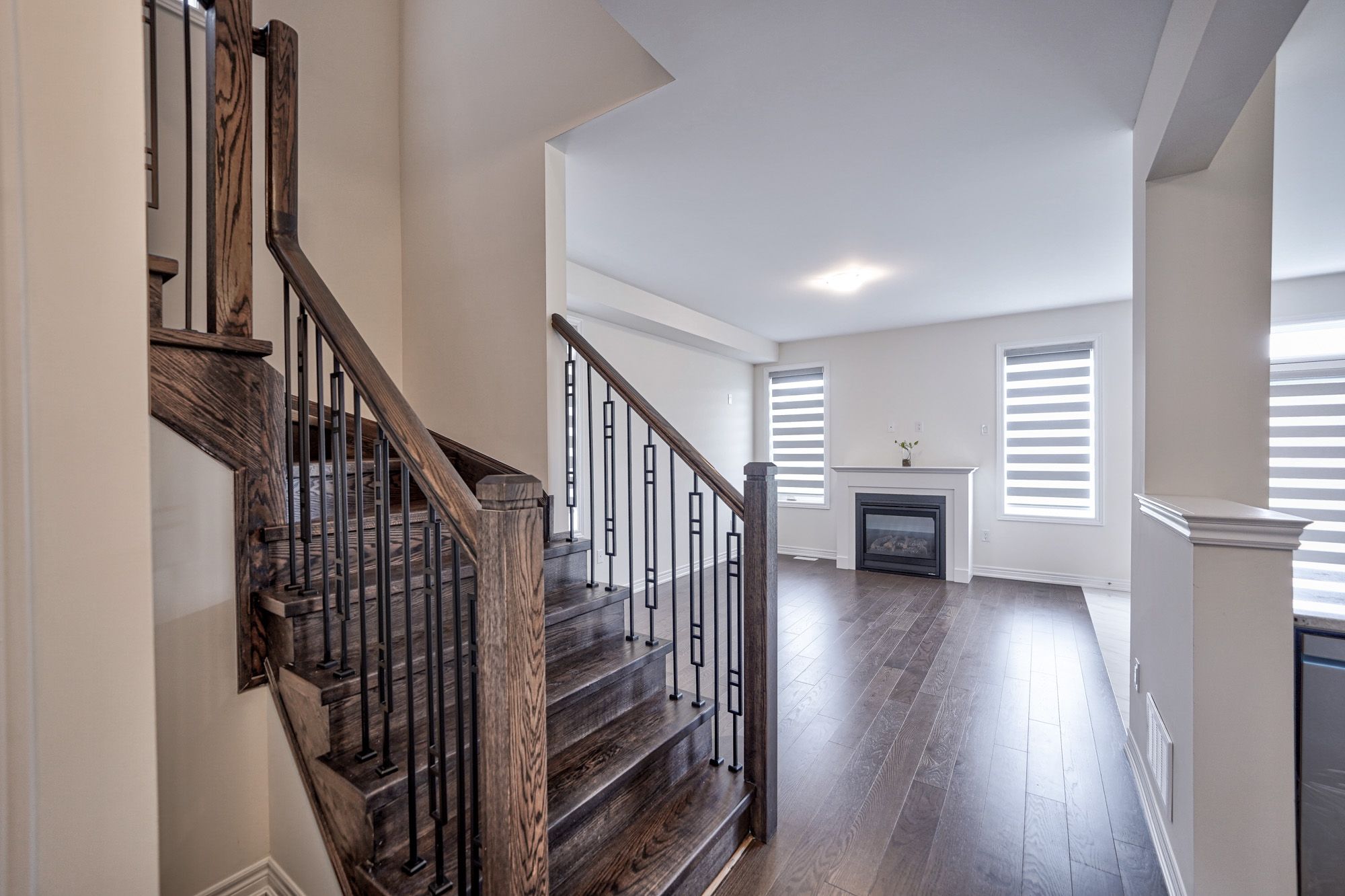 Welcome to your new executive home in the prestigious Windfields Farm Community in OSHAWA! This spacious 4 Bedrooms, 2 Full 1 Half washroom East facing, has a blend of comfort, convenience and style. comes with modern and spacious living space with plenty of natural light, double door entry, upgraded high ceiling with tall doors on both floors, French door to the patio, entrance through garage too (DOOR OPENER INSTALLED), gas fireplace, master ensuite with glass shower oval tub, upgraded plush carpet in bedroom and a powder room on the main floor for your guests. chef inspired kitchen, as well as ss appliances for aspiring chefs.Computer nook is an additional feature in one of the bedrooms. No need to go downstairs for laundry it is conveniently located on the 2nd floor. easy access to grocery, banks, restaurants, Costco and bus to both UOIT, Durham College, 407 and minutes to 412 making this home an ideal choice for professionals. neighbourhood has many trails and nature walks.Sprinkler system ,Garage door opener,Humidifier,