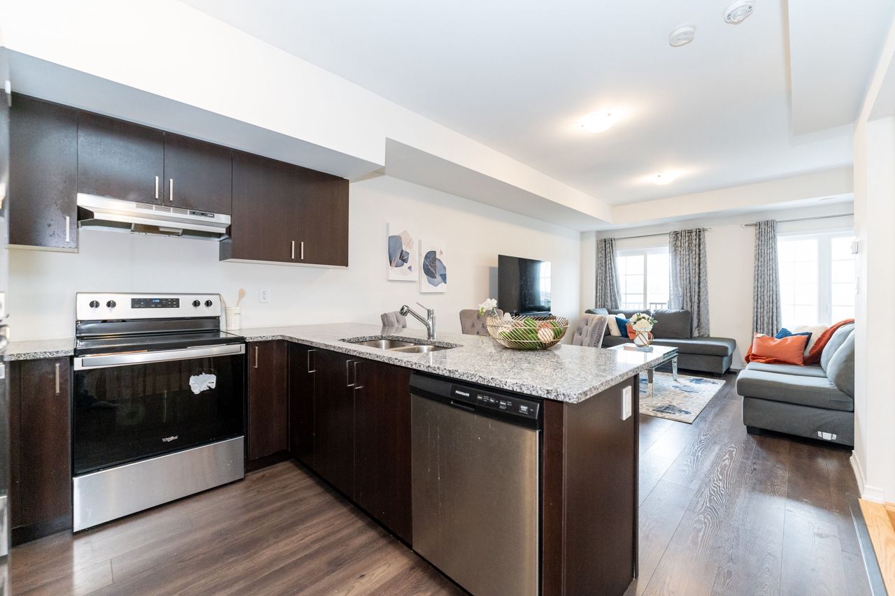 **Fabulous** Is The Word That Comes Out When You See This Beautiful 6 Months Old Corner Unit Townhouse In Oshawa Built By Tribute Homes. This Bright And Open Concept Home Is Ideal For A Young Family Or Anyone Looking To Downsize. Main Floor Boasts 9Ft Smooth Ceilings, Laminate Floors, A Modern Kitchen With Granite Counter Tops And Stainless Steel Appliances And To Add It On Top Full Washroom And 1 Bedmaster Bdrm In Upper Level With Four Piece Ensuite Featuring A Huge Glass Enclosed Shower And And Oversized Soaker Tub. Bright Above Ground Rec Room/Home Office Makes For A Perfect Work Or Play Area. Close To Durham College, Hwy 407, Costco, Grocery, Starbucks, Tim Hortons Lcbo, 35+ Stores Within 5 Minute Drive.Stainless Steel Fridge, Stove & Range Hood, Stackable Washer & Dryer, Hrv System And Elfs. Hwt Is Rented