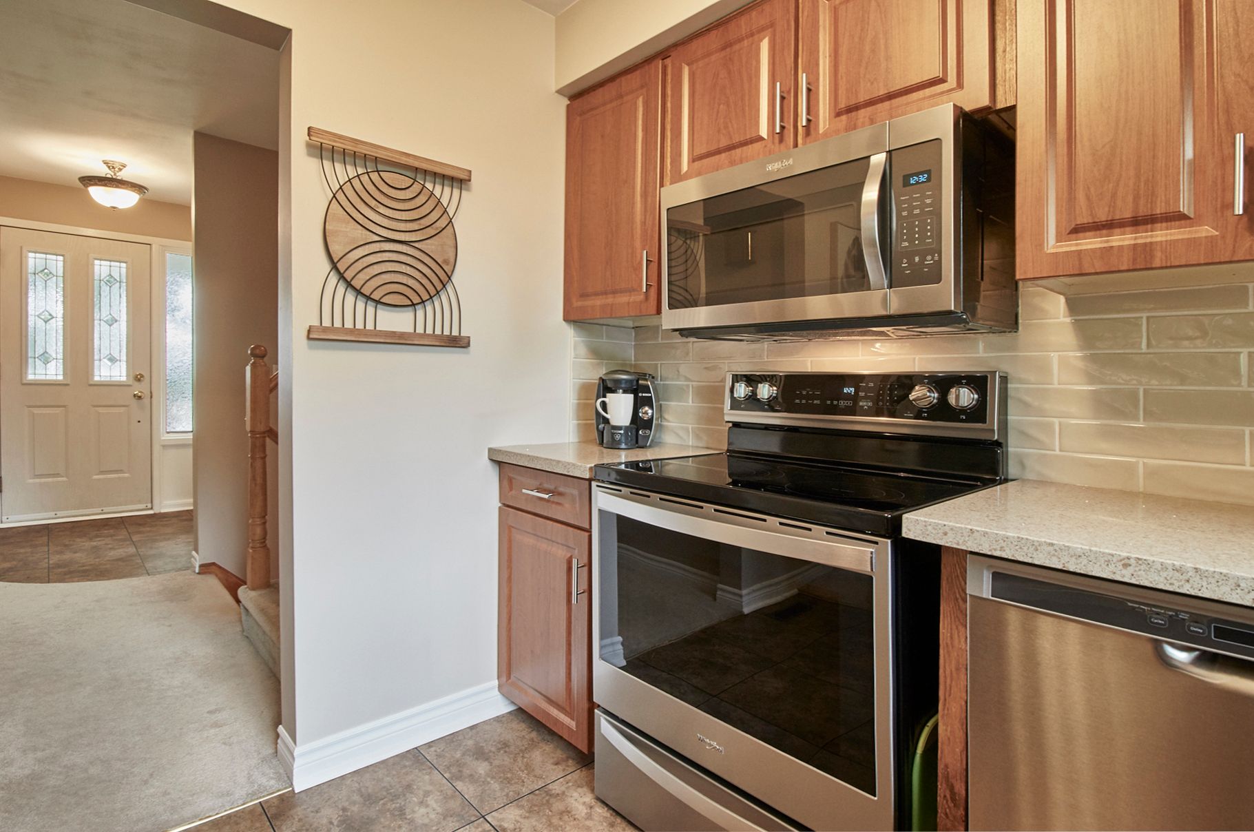 Be in For the New School Year!! This 4 Level Sidesplit has Fantastic Curb Appeal and has Been Lovingly Cared for by the Same Family for 25 Years. Pristine, A-1 Condition. Move Right In and Enjoy. Hardwood Under Carpet on Main Two Floors (not the stairs). Formal Living and Dining Rooms Offer Gas Fireplace and Crown Molding. Kitchen Upgraded in 2021 With Quartz Counters and Backsplash. S/S Appliances. Main Bath Upgrade '16 With New Vanity & Marble Counter. Cozy Up in the Basement With a Second Gas Fireplace, Additional Sitting Area, Exercise Nook and Bar. Sensational Fully Fenced Backyard With Lovely Gardens and Mature Landscaping. Separate Entrance Into 3rd Level From the Backyard. Convenient Man Door From Garage to the Backyard. NO Sidewalk, Lots of Parking on Double Wide Driveway. Popular Family Neighborhood Where you Can Walk to Schools, Shopping and Transit. Quick Access to Hwy 401. Perfect Place to Call Home! Inclusions: See Below - All Appl, ELFs, GDO, HWT and more.Furnace '18, AC '18, Shingles '19, Vinyl Windows. Crawlspace Houses the Furnace and Offers Plenty Of Storage