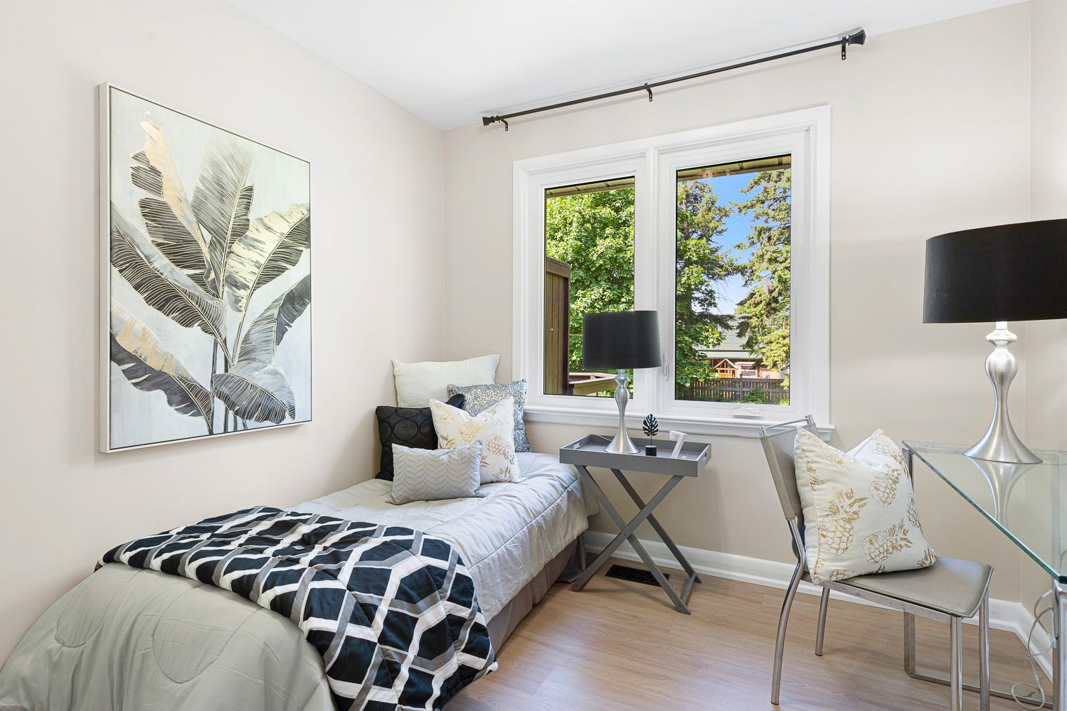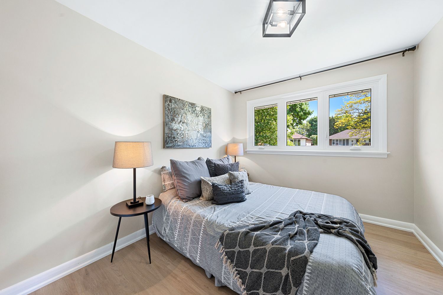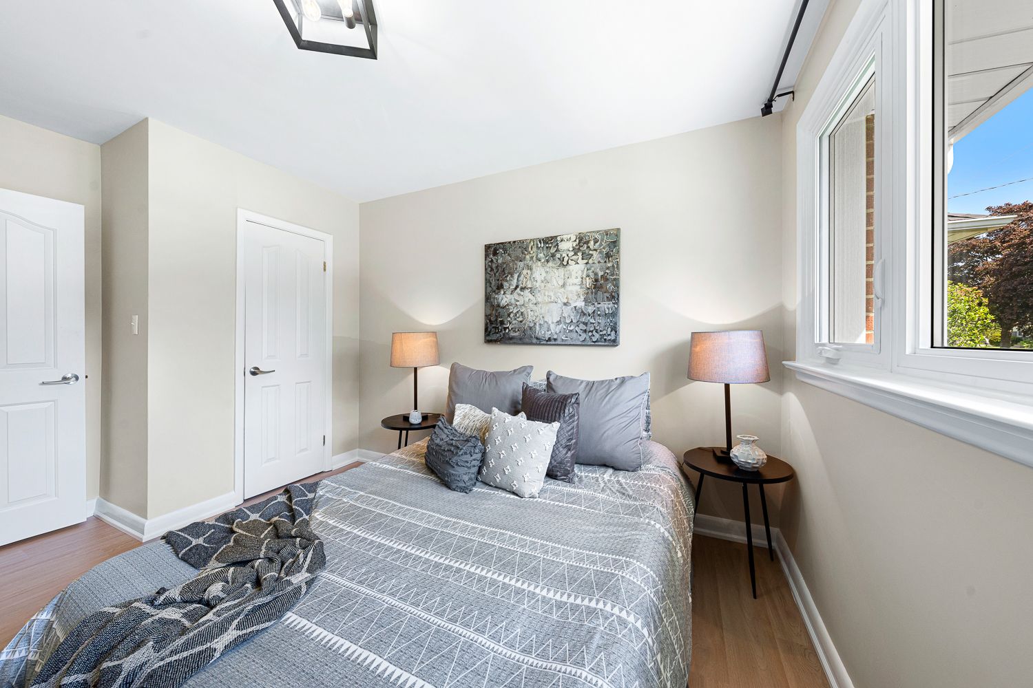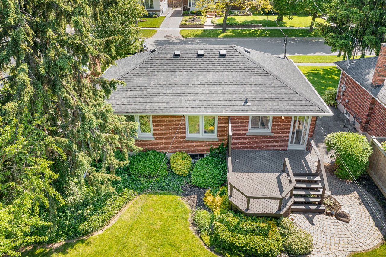 This Meticulously Maintained, 3 bed, 2 bath Brick Bungalow Is Nestled On A Quiet Street within a Mature, Family-Friendly Neighbourhood. This beloved home is Immaculately Presented both Inside and Out! The Main Floor has been updated and features Luxury Vinyl Floors, an Upgraded 4 pc Bathroom, as well as, aspects of the Kitchen, including Quartz Countertops! The Livingroom offers a beautiful East Facing Bow window which invites the morning light to flood the room! Primary bedroom and both secondary bedrooms are good sizes, and all bedrooms and the bathroom have had their windows updated in ‘19! The Eat In kitchen includes a Walk-Out To Sunset facing Deck overlooking the 136 ft deep lot with Garden Shed. Lower Level offers further space and possibilities, currently features an Open Concept Rec Room and Bar, With 2 Pc Bathroom and Laundry. In-Law Suite Potential with possible separate entrance at rear of home! First Time This Home Has Been Offered For Sale since new!Updates: Freshly Painted ‘23, Upstairs Bath'23, Aspects of Kitchen ‘23 Light Fixtures ‘23, Bsmt Fireplace Serviced ‘23, Owned HWT ‘21, Furnace ‘20, Gutter Guard '17. Close To All Amenities & with quick access To 401.