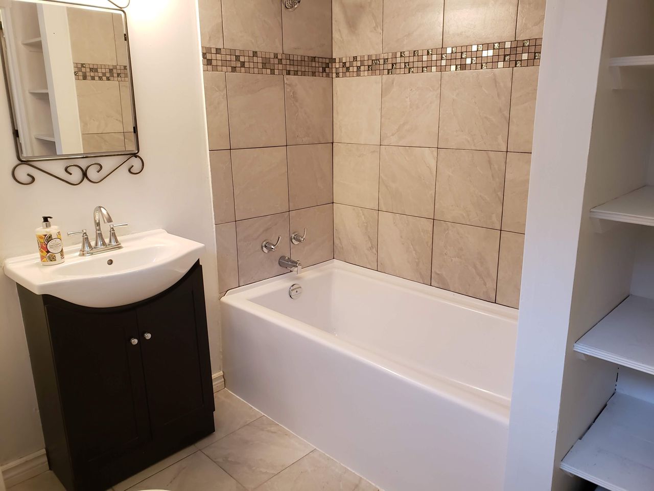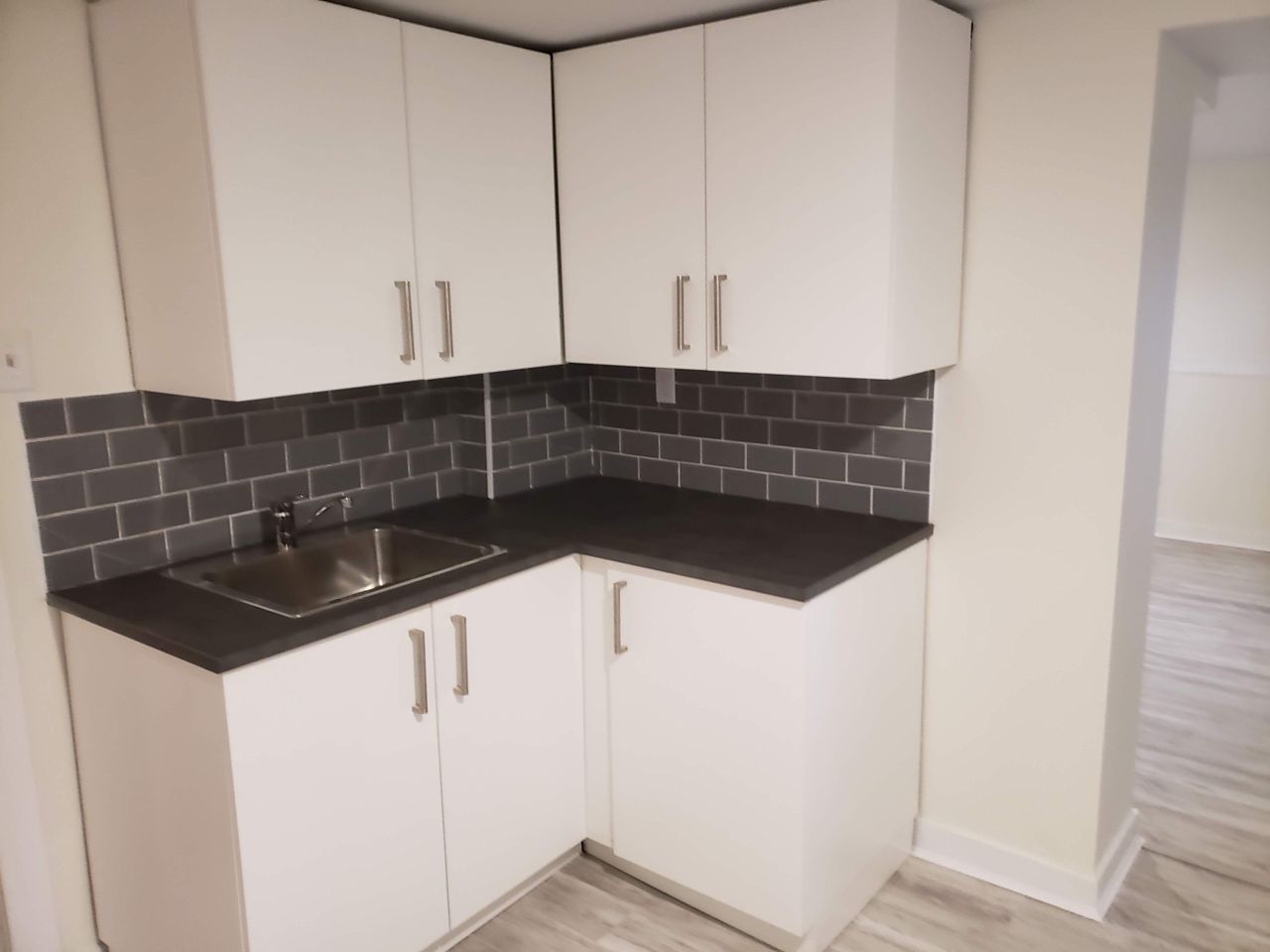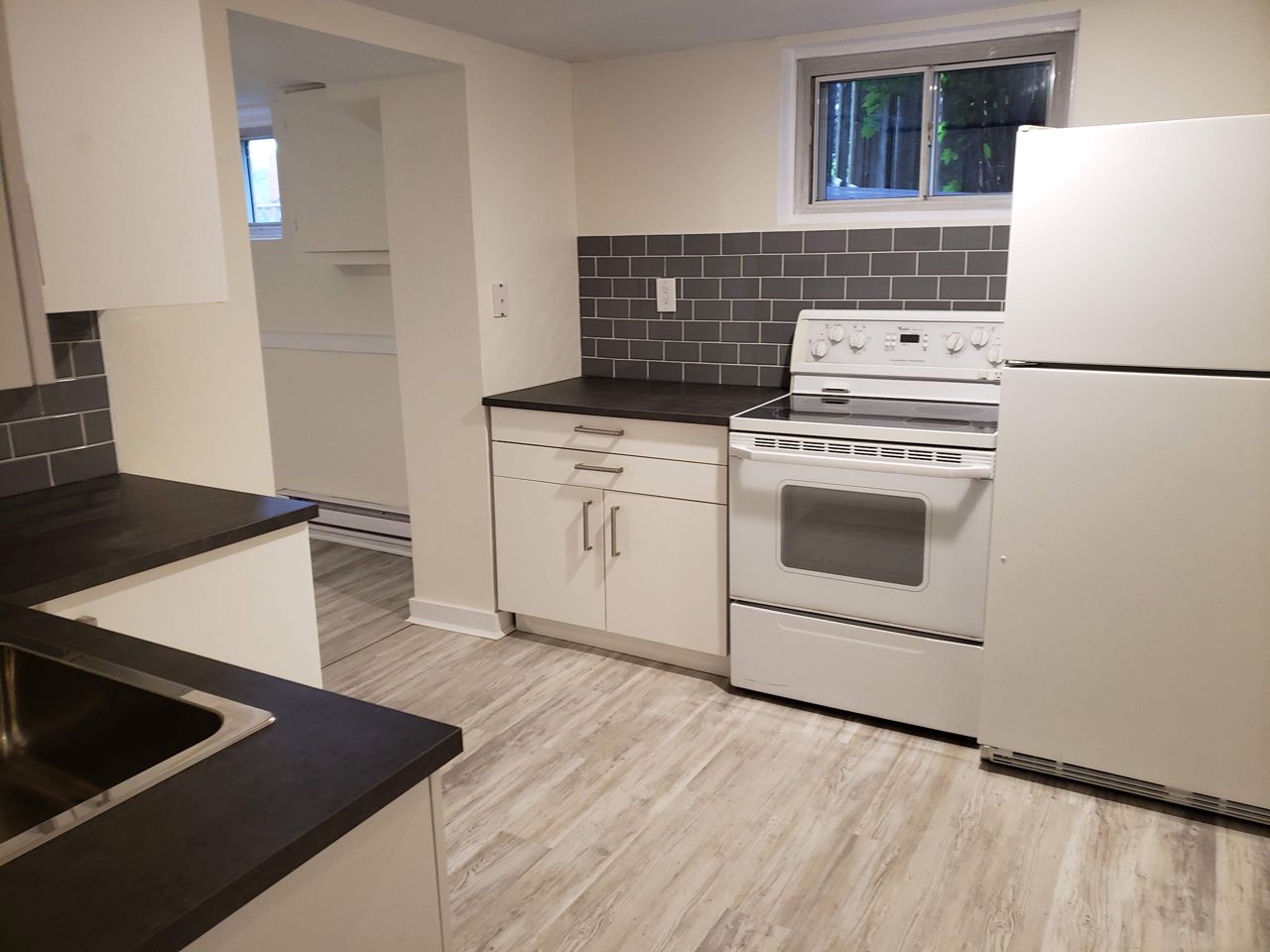 Vinyl Floor Ceramic Back Splash Above Grade Window