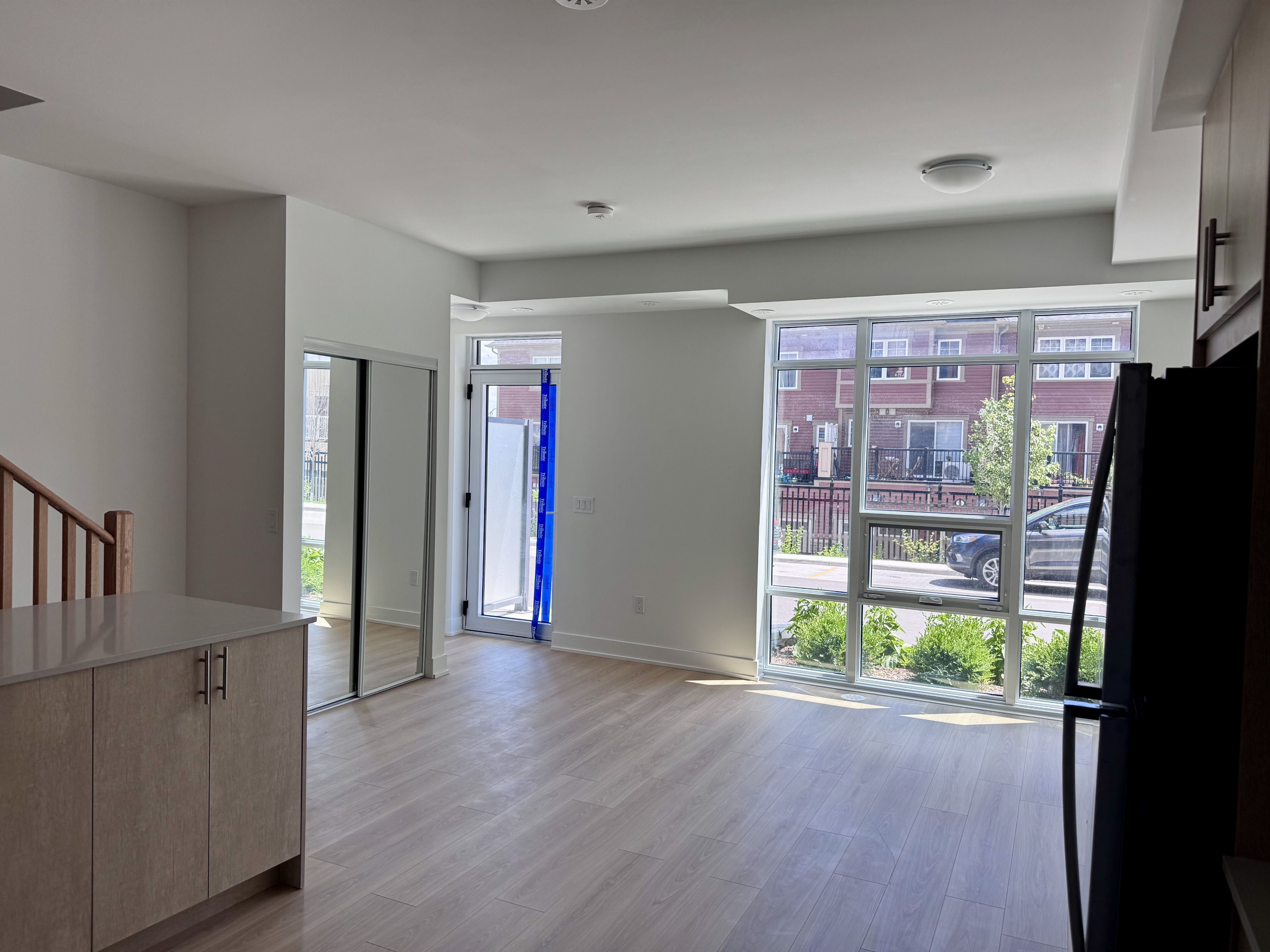 Be the first to move into this bright, modern 3 bedroom + den and 3 bath townhouse in the high-demand Wind fields community by Tribute Community. Features include 9 ft ceilings, floor-to-ceiling windows, open-concept living/dining, laminate floors, a sleek kitchen with stainless steel appliances, quartz counters, and access to a covered parking spot directly in front of the home. Second floor offers 2 bedrooms + den, laundry, and a 4-pc bath. The top floor features a private primary suite with ensuite, walk-in closet, terrace, and access to a spacious 384 sq ft rooftop patio. Enjoy top-tier amenities which includes: gym, yoga & spin studios, lounge, rooftop terrace, private dining room, and more. Steps to Costco, transit, schools, parks, and Hwy 407.