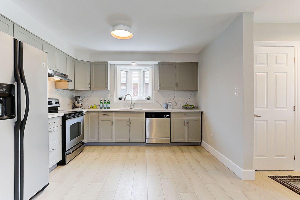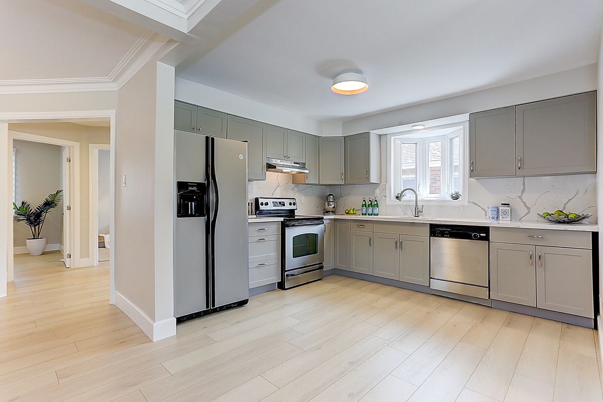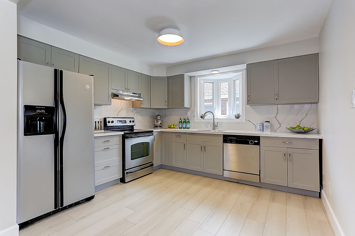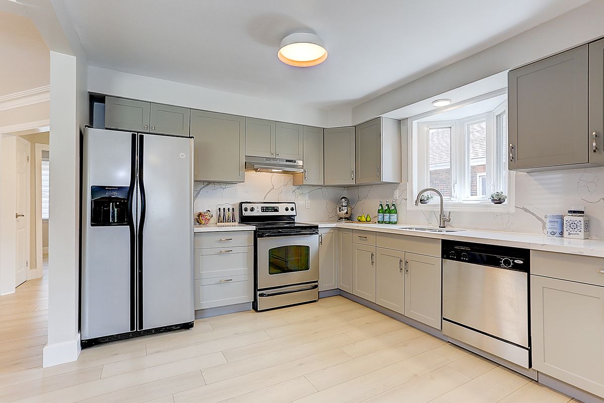 Welcome to this W-O-W Property in Amazing Location! R-E-N-O-V-A-T-E-D TOP TO BOTTOM**Fronting on a Park, Not the Neighbours! Solid Brick Bungalow w/Large Porch and Finished Bsmnt w/Separate Entrance**Brand New Everything: Quality Laminate Flooring & Flat Ceilings Throughout*Modern Light Fixtures & Window Coverings*N-E-W Kitchen Cabinets, Sink, Motion Activated Faucet and Quartz Counters*Fresh Paint and Decor**Open Concept Layout on Main Floor with Two Airy Bedrooms and Updated Bathroom*Spaciouis Living Room with Large Window Overlooking a Beautiful Park*The Basement Features Separate Entrance Leading To Kitchen, 3 Pc. Bathroom, 2nd Laundry Rough In, & Rec Rm W/ Pot Lights Ideal For Potential In-Law or Rental Suite*1.5 Car Garage W/ New Lights - great for a workshopAll Elfs and Window Coverings, Kids Play Ground at the Backyard (AS IS), White Fridge/Freezer in the Garage