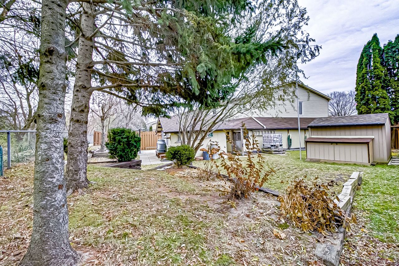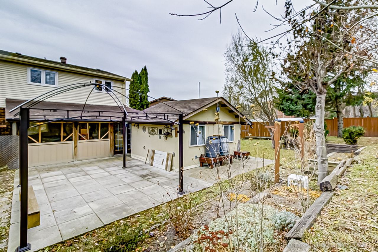 ** Wow !!! Renovated from top to bottom, Big pie shaped lot backing to Harmony Creek Valley, Ravine backyard, Laminated floor through out, Big garden shed, 2nd garden shed, separate entrance all closed in and connected to sunroom area could be extra storage space for anything, Nice inlaw suite set up, basement laundary, all appliances as new as house renovated. list of renovated attached** Fridge, Stove, Dishwasher, Washer, Dryer, Fridge in basement, All existing electric light fixtures, All existing window coverings, CAC, Water Barrels in backyard, Gazebo and accessories, two sheds , Water softener, Reverse Osmosis water