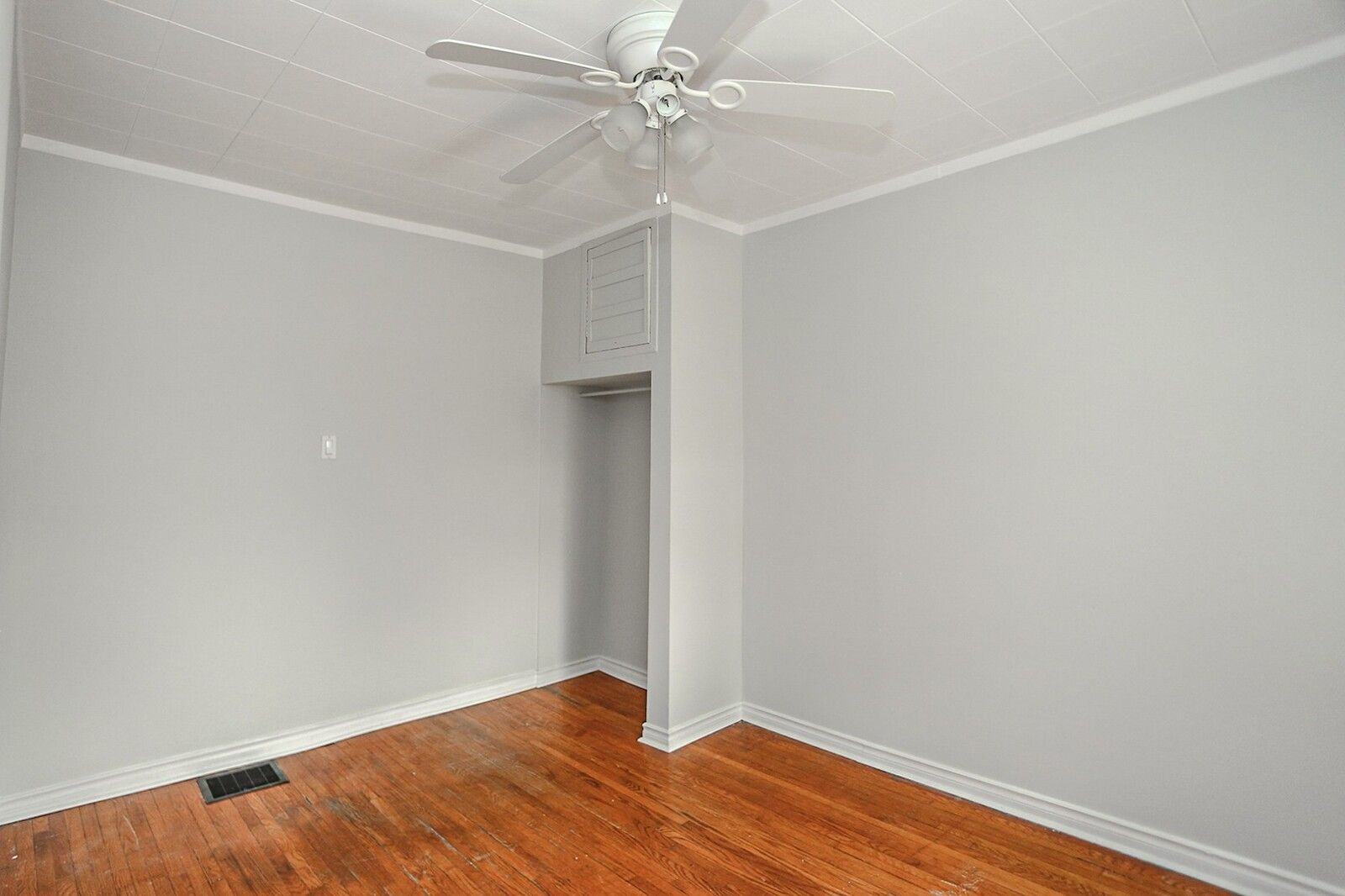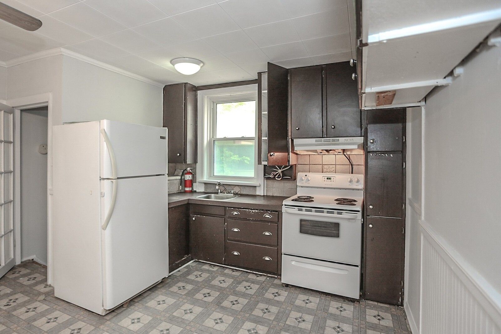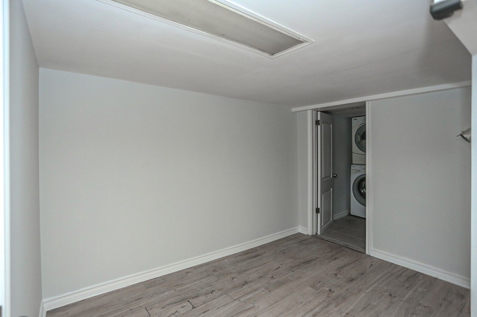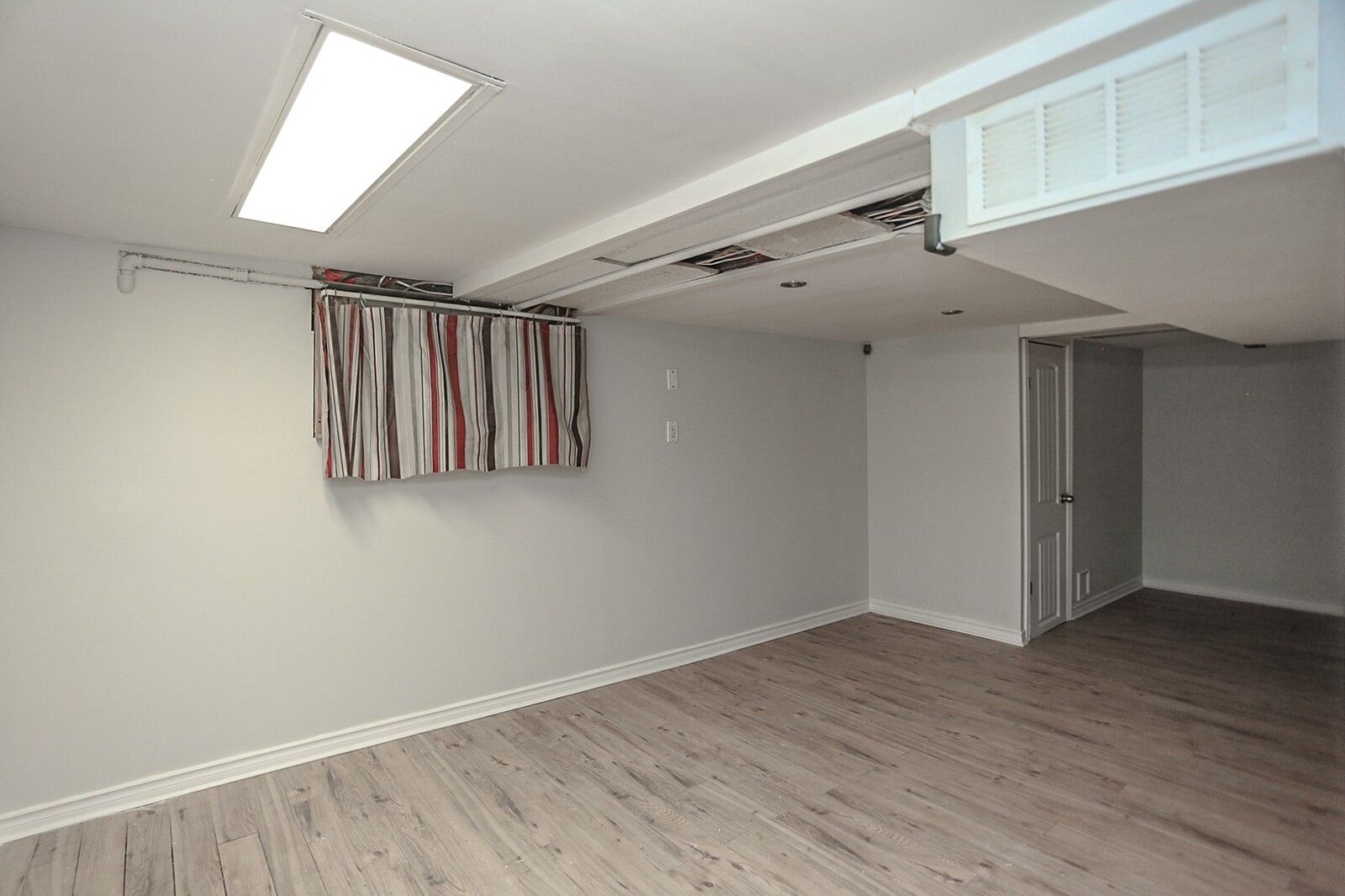 Great investment opportunity to own a fully detached bungalow in desirable neighbourhood. Freshly painted and cleaned. 5 min to Costco, restaurants, shopping, lcbo-beer, transit. Updated windows, roof, eaves, attic insulation and weeping tiles. Huge fully fenced yard. Separate entrance to finished 1 bed, 1 bath, rec room and living area. Main level features original hardwood. W/O from primary bedroom. Vintage front porch, just needs some TLC to make it your own home! Home is sold "as is - where is"Crown moulding with all new paint - smoke free home!