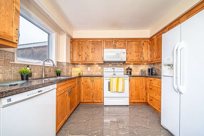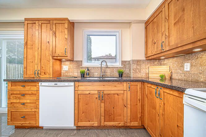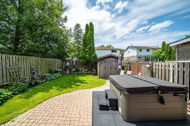 Lovely and spacious semi-detached home located on a quiet street close to the Oshawa Shopping Centre and Civic Centre. Featuring three bedrooms and three bathrooms, this home is perfect for families seeking a comfortable and practical living space. The main floor showcase huge family room with large window and laminate floors, bright and inviting eat-in kitchen with backsplash, quartz counter, and dining area with sliding door walk-out to a very nice and private fenced yard with patio and hot tub which is a great place to relax and enjoy the outdoors. The upper level primary bedroom features a convenient 2-piece ensuite bath and walk-in closet. The finished basement highlights the recreation room with pot lights, above grade windows and broadloom The separate entry to the basement offers potential for additional dwelling. This home is excellently located steps to schools, parks and close to all amenities.Kitchen updated 2016
