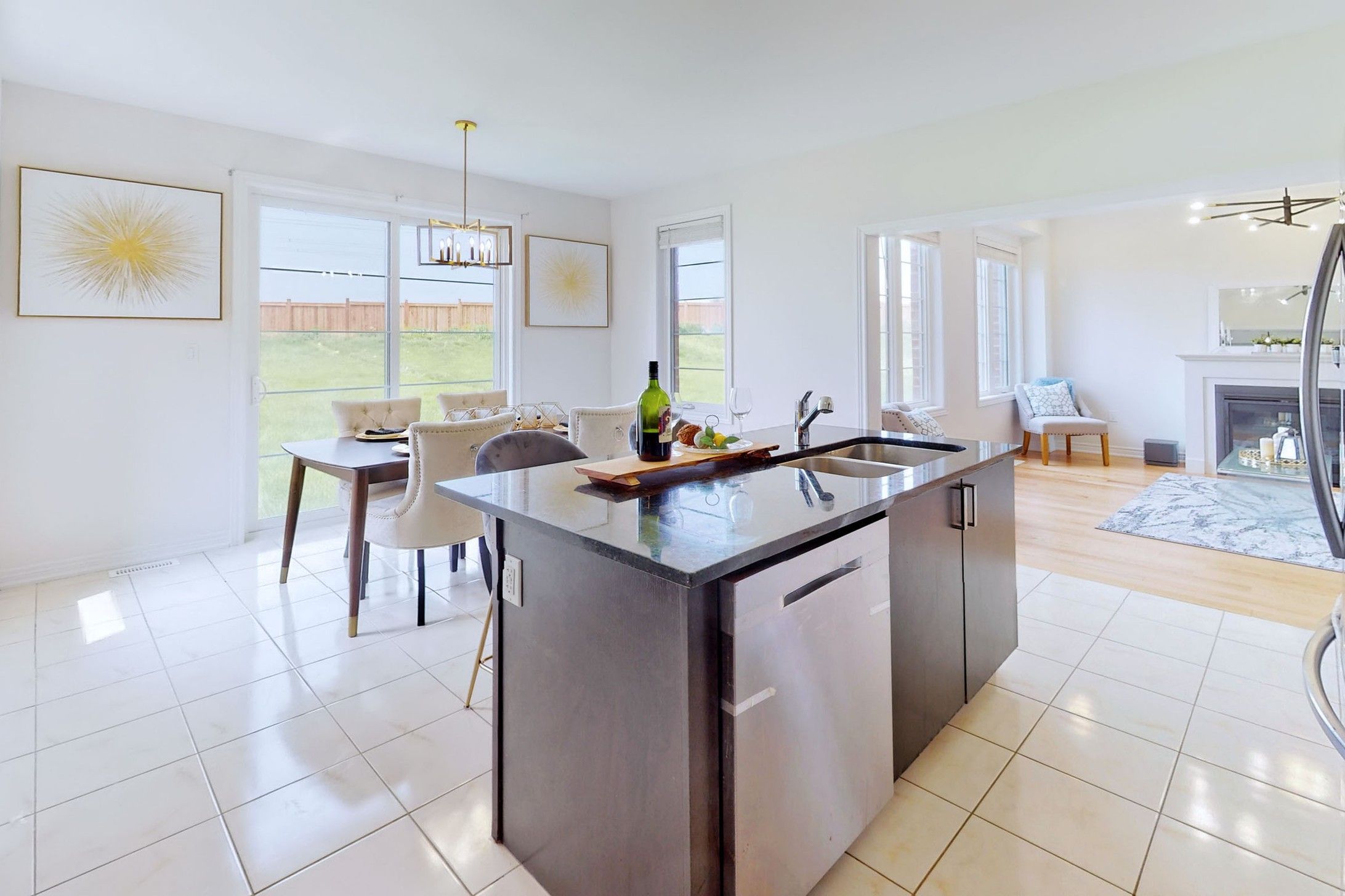 Hardwood Floor Gas Fireplace Combined W/Dining