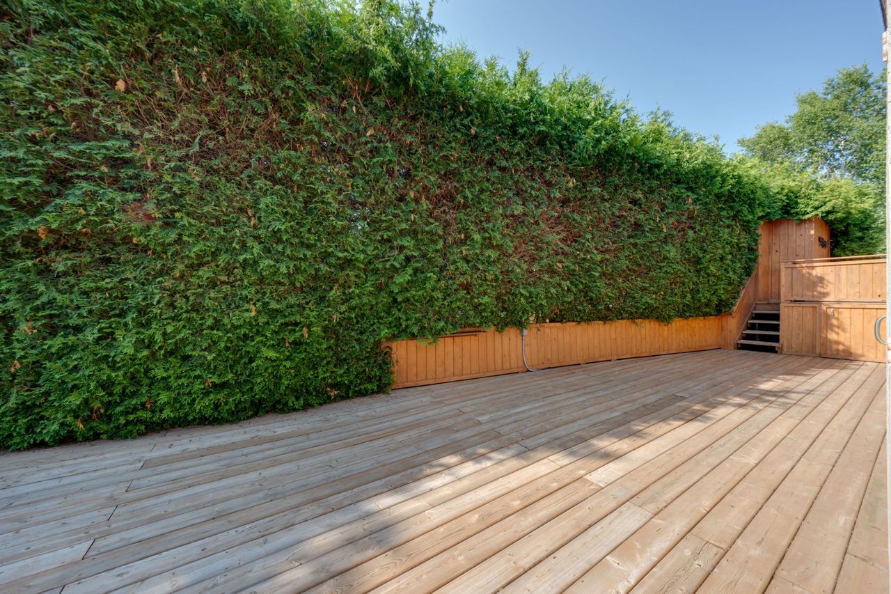 Entertainer's Deck boasting a sprawling private backyard oasis complete with lush greenery, perfect