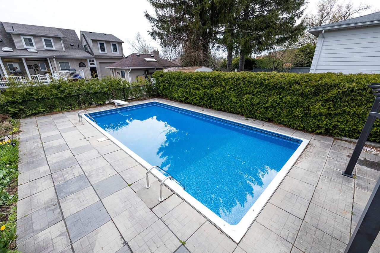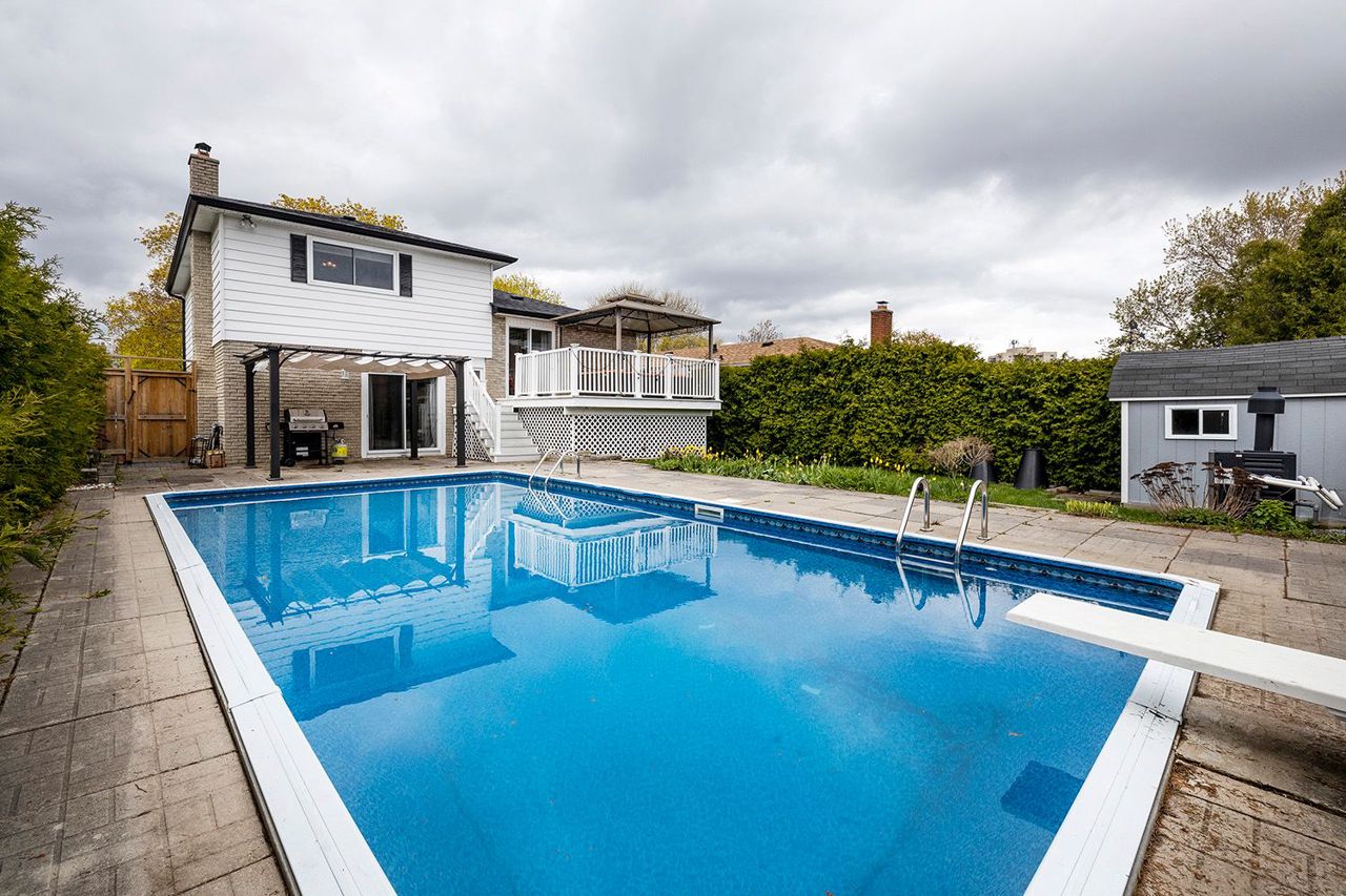 The perfect detached home on a tranquil tree-lined street in the sought-after Centennial neighborhood. This home features a large eat-in kitchen that leads to the perfect low-maintenance deck overlooking the full-sized 32'x16' inground pool. Open concept living/dining room, a foyer space containing access to the garage, 3 nice-sized bedrooms, a new air conditioning unit (2022), new washer & dryer (2022), all new stainless steel appliances (2023), New Hot Water Tank (2021), New Upper and Main Floor Windows (2013), New Pool Liner (2020), Roof Tiles replaced (2021), Aluminum wiring updated (2021), a gas fireplace, gleaming hardwood floors, and a spacious two car wide driveway.Carson Dunlop Home Inspection is available upon request. All aluminum wiring has been updated - please find attached Electrical Safety Authority Certificate confirming this for insurance purposes.