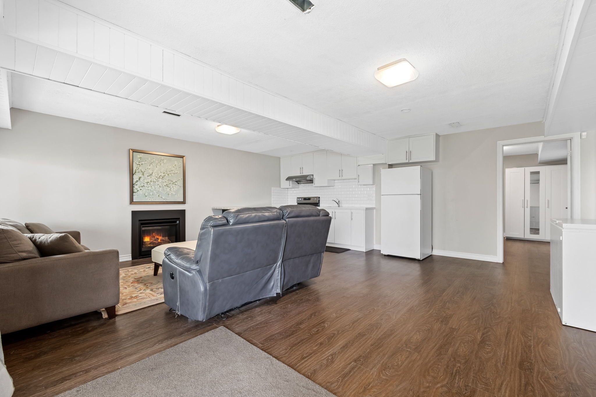 Fireplace Hardwood Floor W/O To Deck