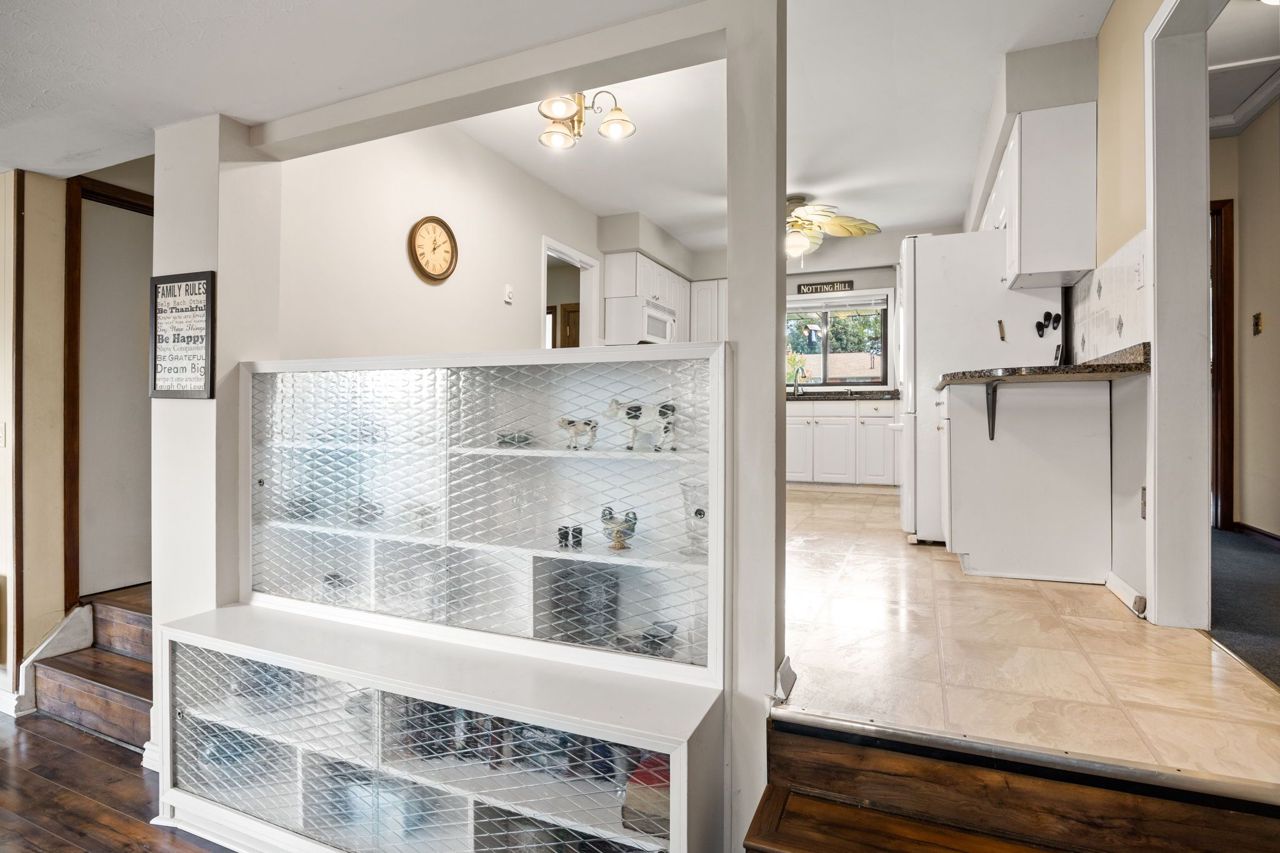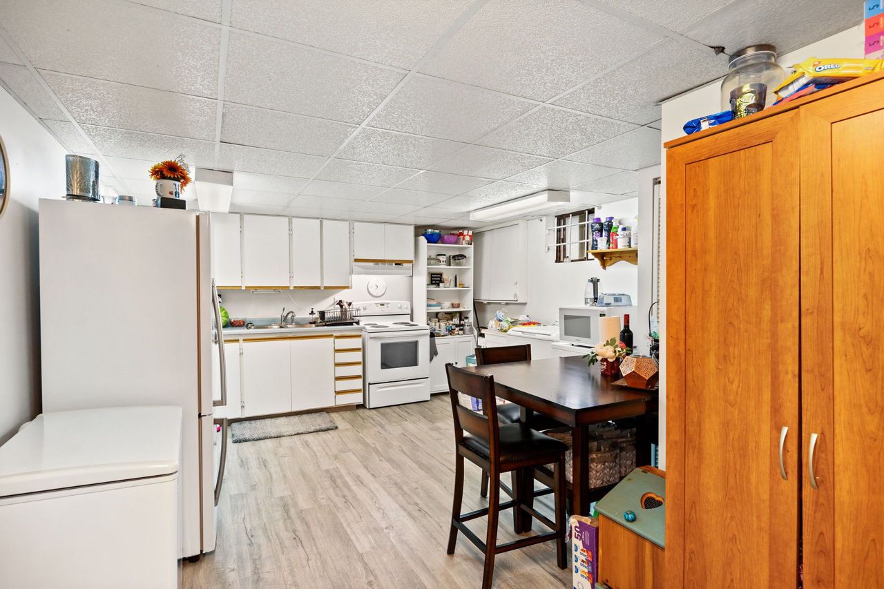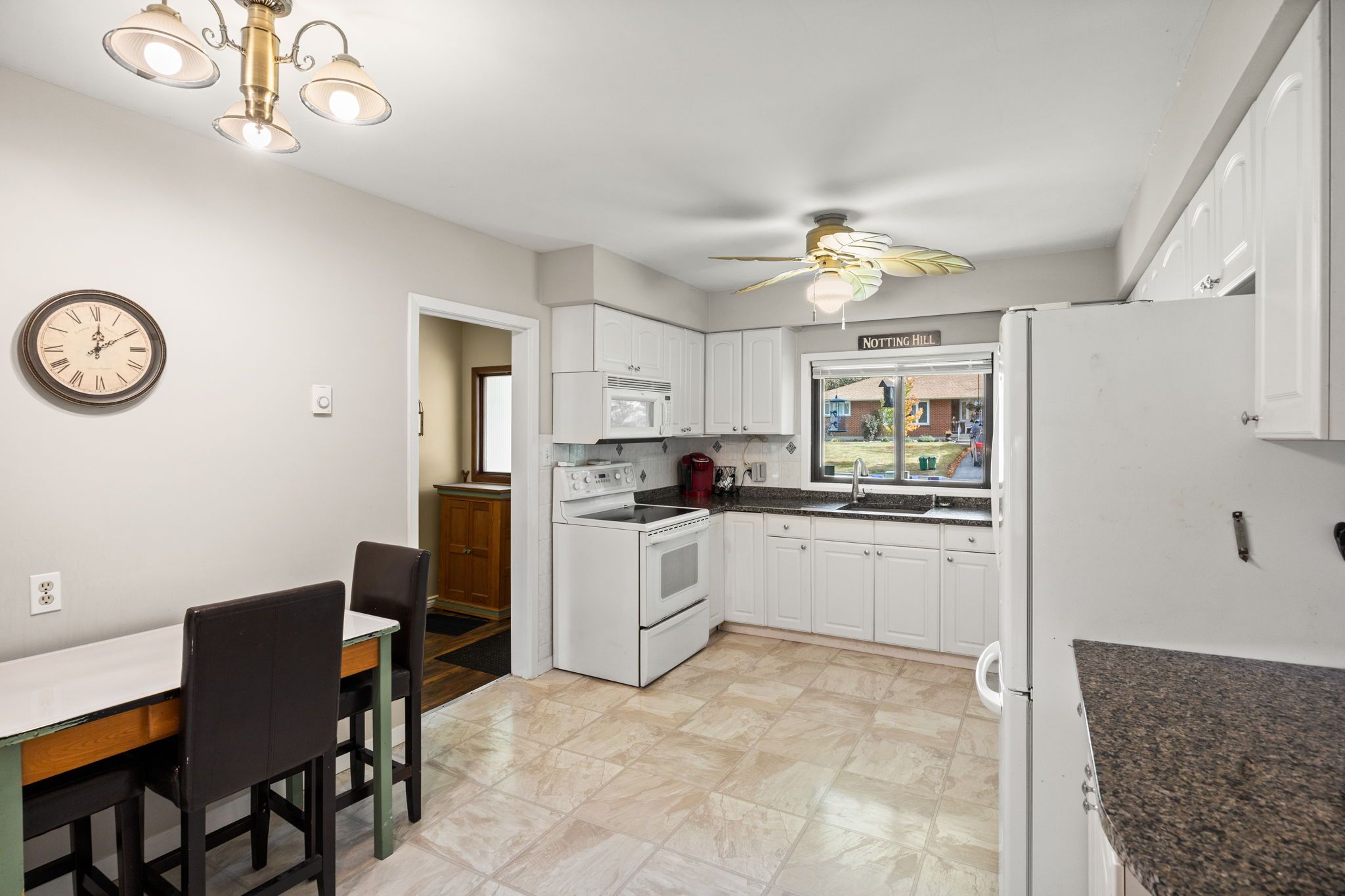 West Oshawa Bungalow on a quiet street in an established neighbourhood near schools, parks, Oshawa Golf & Curling Club, shopping centre and more! Huge oversized fenced back yard with sunny Western exposure. Open concept layout with renovated classic white kitchen overlooking dining and living room. Walk-out from dining room to sunroom and deck. Main floor 5 piece bathroom with his and hers basins. Finished basement with huge recreation room with fireplace with gas fireplace insert, big picture window and walk-out to backyard, 2 extra bedrooms, office and 2nd kitchen. Easy-care laminate floors. This is an ideal property for an extended family.