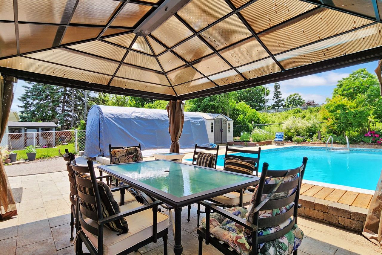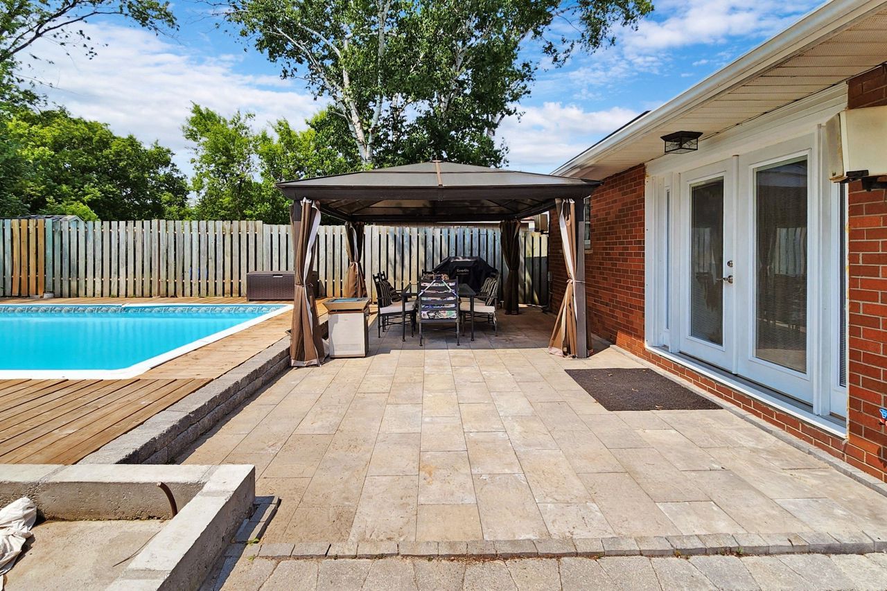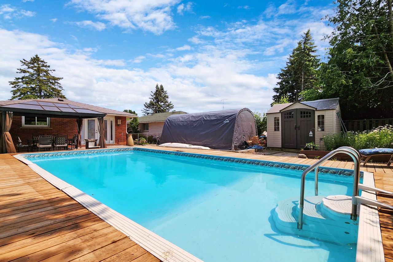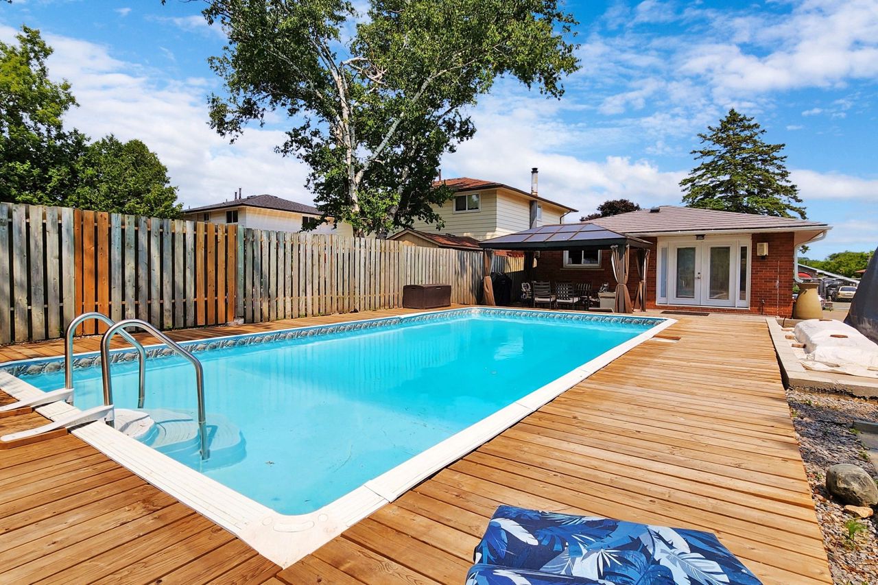 Gorgeous three bedroom must see brick bungalow situated on a deep lot, on a quiet court, in the sought after community of Donevan, bordering on Courtice. Metal roof installed in the fall of 2017, hardwood and tile floors, freshly painted with new potlights. Custom built-in dishwasher, wall oven and microwave. Inground pool and patio. Lower floor offers a large in-law suite with separate entrance, kitchenette, and rec room that is ready for your personal touch. Close to 401 and minutes away from 407, community centres, schools and public transportation.Stainless Fridge, Stove, Custom Built-in Dishwasher, Washer and Dryer "as is" condition, metal roof replaced fall 2017. Note: Permit obtained for single garage - (permit not transferrable), Lot Depth as per MPac